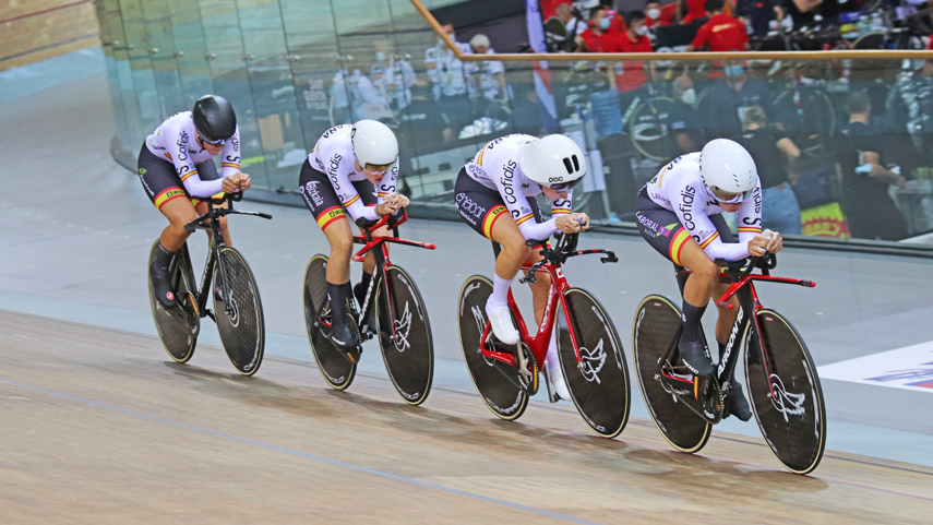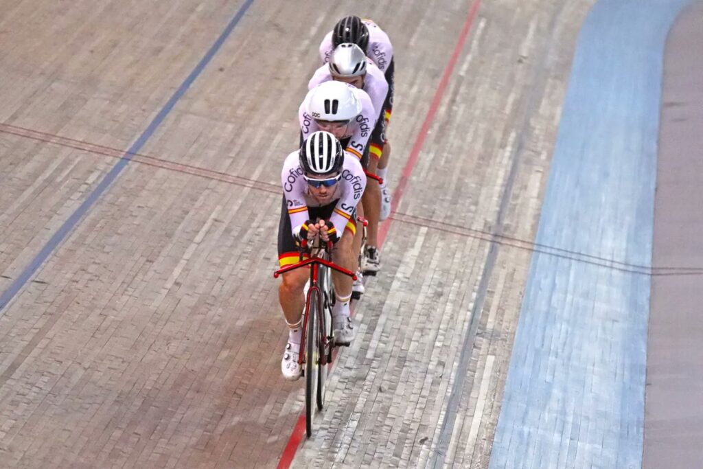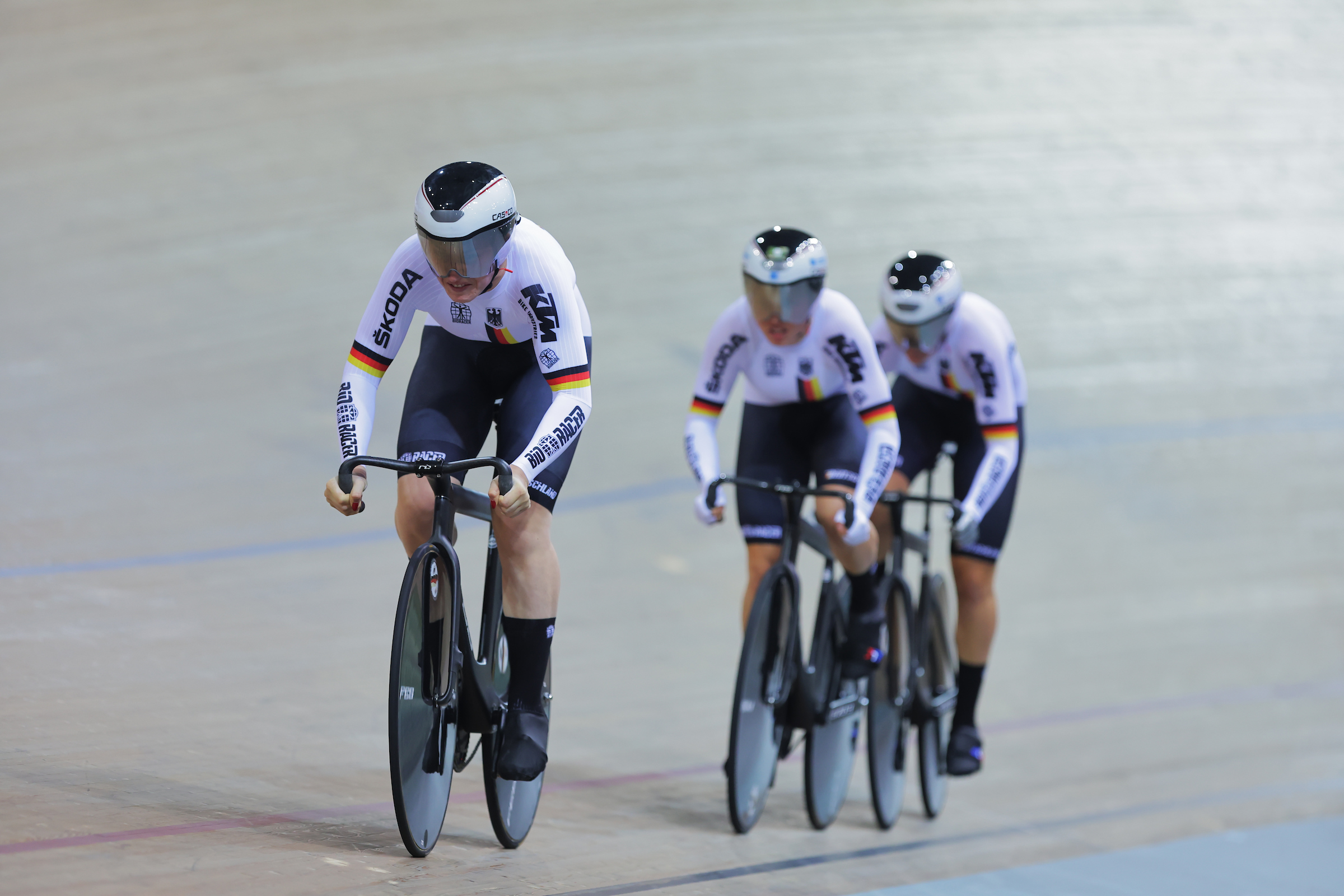 Pauline Grabosch, Emma Hinze y Lea-Sophie Friedrich no solo se llevaban un nuevo ‘arco iris’, sino que en el transcurso de la competición batían por dos veces el récord del mundo. Tras haber marcado el mejor registro en la clasificatoria (46.573) se convertían en la primera ronda en el primer trío femenino en rodar por debajo de 46 (45.983), plantándose en la final ante una China (Yufang Guo, Shanju Bao y Liying Yuan) que fue a más tras marcar el cuarto tiempo en la clasificatoria. De hecho, en la final llevó la delantera en la primera vuelta, se mantuvo en los mismos tiempos en la segunda, y solo terminaría cediendo en la tercera, con Alemania estableciendo su segunda plusmarca mundial (45.967).