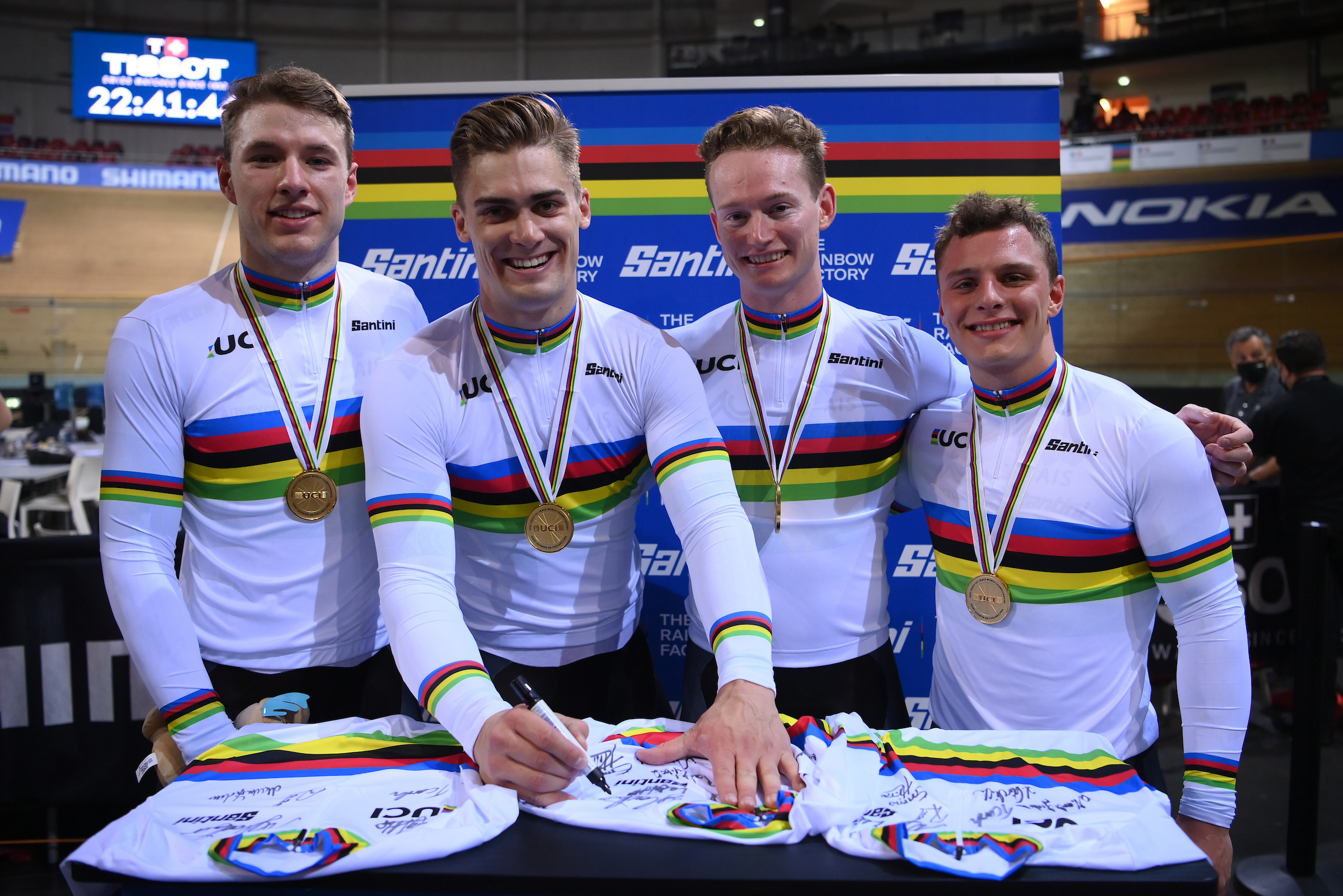 Aunque daba la impresión de que Italia tenía una quinta y hasta una sexta marcha a tenor de lo visto ayer, la persecución masculina se saldaba con el triunfo de la renovada Gran Bretaña de Dan Biggham, Ethan Hayter, Ethan Vernon y Ollie Wood, que llevó la delantera en todo momento y con un 3:45.829 no solo se llevaba un triunfo que no conocían desde 2018, sino que se quedaban a solo dos décimas de su récord nacional, demostrando que van por un muy buen camino. Italia se quedaba a solo dos décimas (3:46.033), pero el cambio de Francesco Lamon por Simone Consoni, junto a Filippo Ganna, Jonathan Milan, y Manlio Moro no dio el resultado esperado.