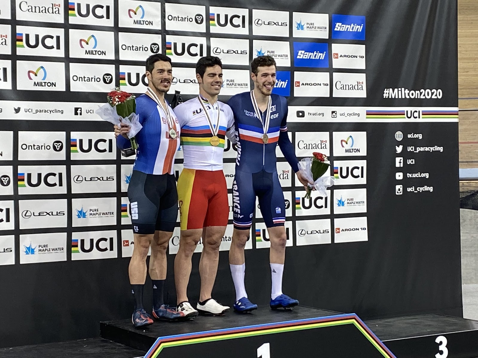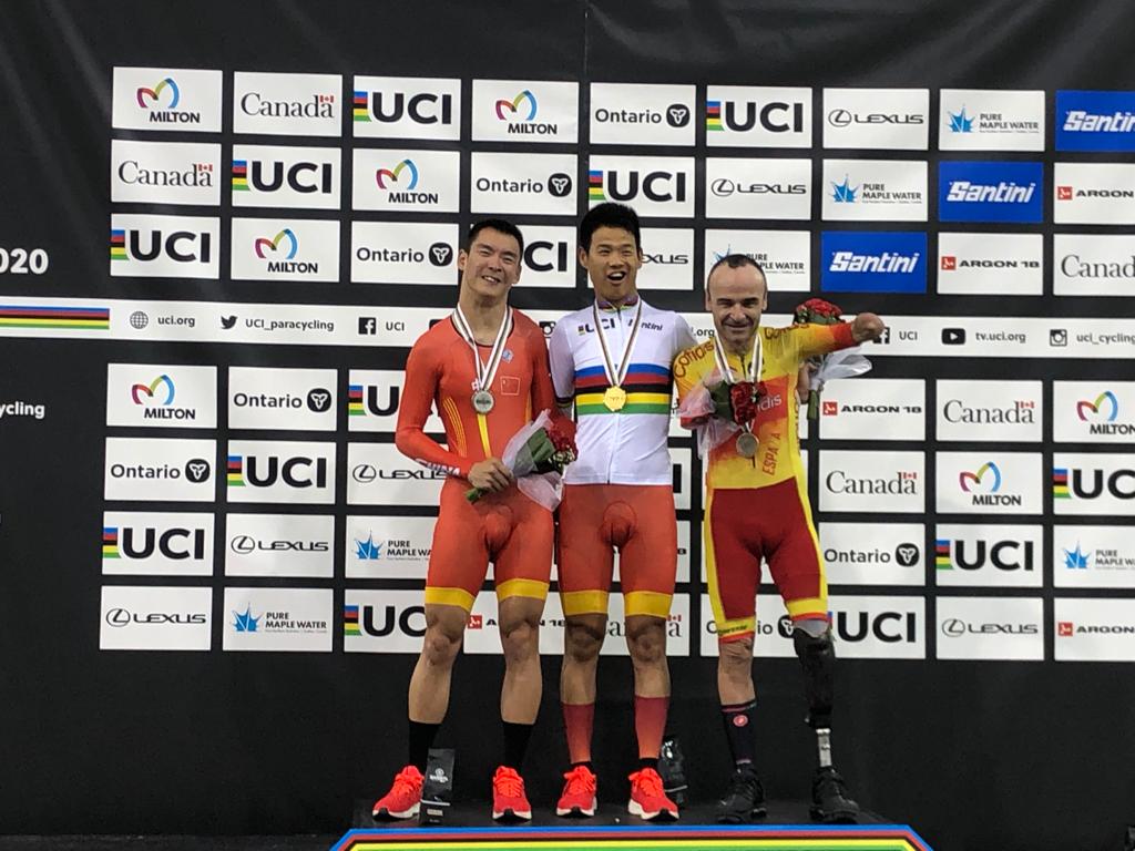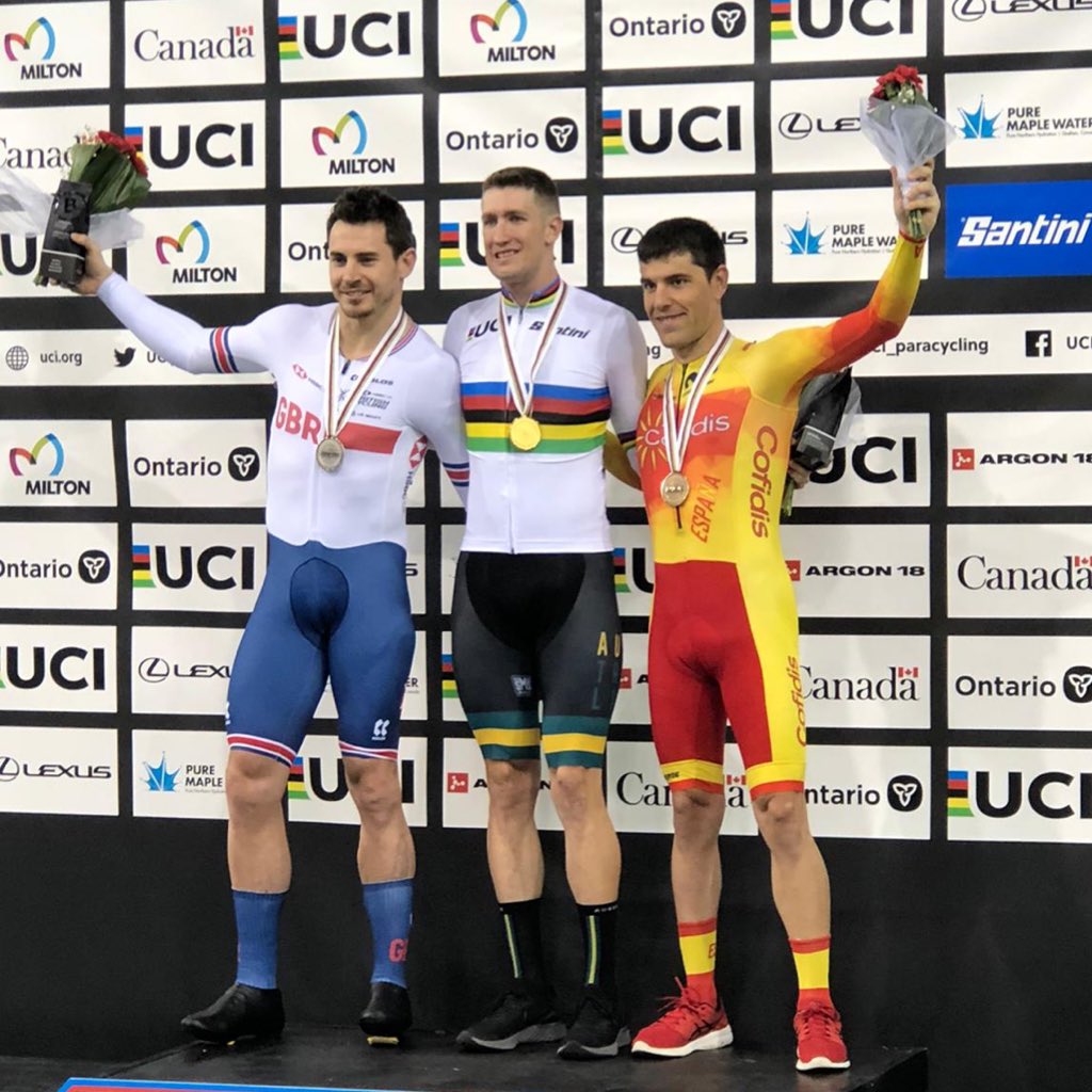 La medalla de oro de Alfonso Cabello en el kilómetro contrarreloj, la de plata de Ricardo Ten y el bronce de Eduardo Santas, en persecución, es el balance de la selección española en la primera jornada del Mundial de ciclismo adaptado que ha comenzado hoy en la ciudad canadiense de Milton.