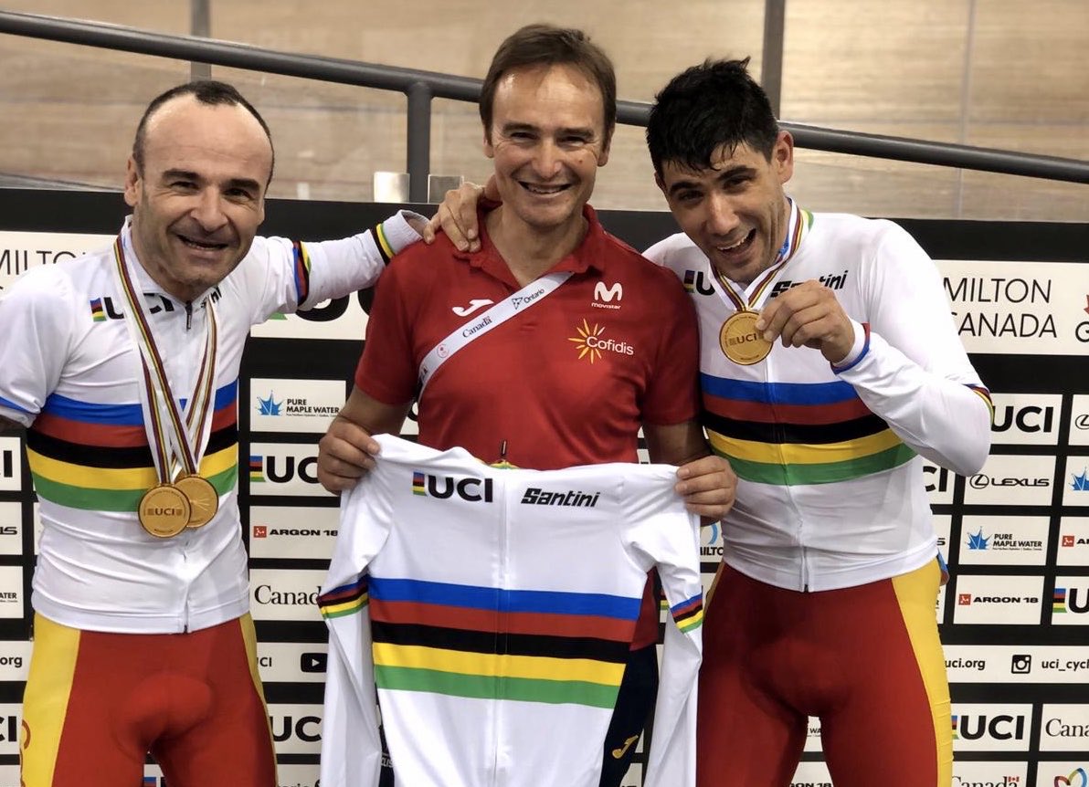 La doble medalla de bronce conseguida por Eduardo Santas, en el scratch y en el ómnium de la clase MC3, paliaba la decepción de la descalificación del equipo de velocidad con Ricardo Ten, Alfonso Cabello y Pablo Jaramillo, a pesar de haber sido segundo en la clasificatoria y estar en disposición de sumar una medalla más en el Mundial,pero sobre todo recuperar la primacía en esta disciplina.
