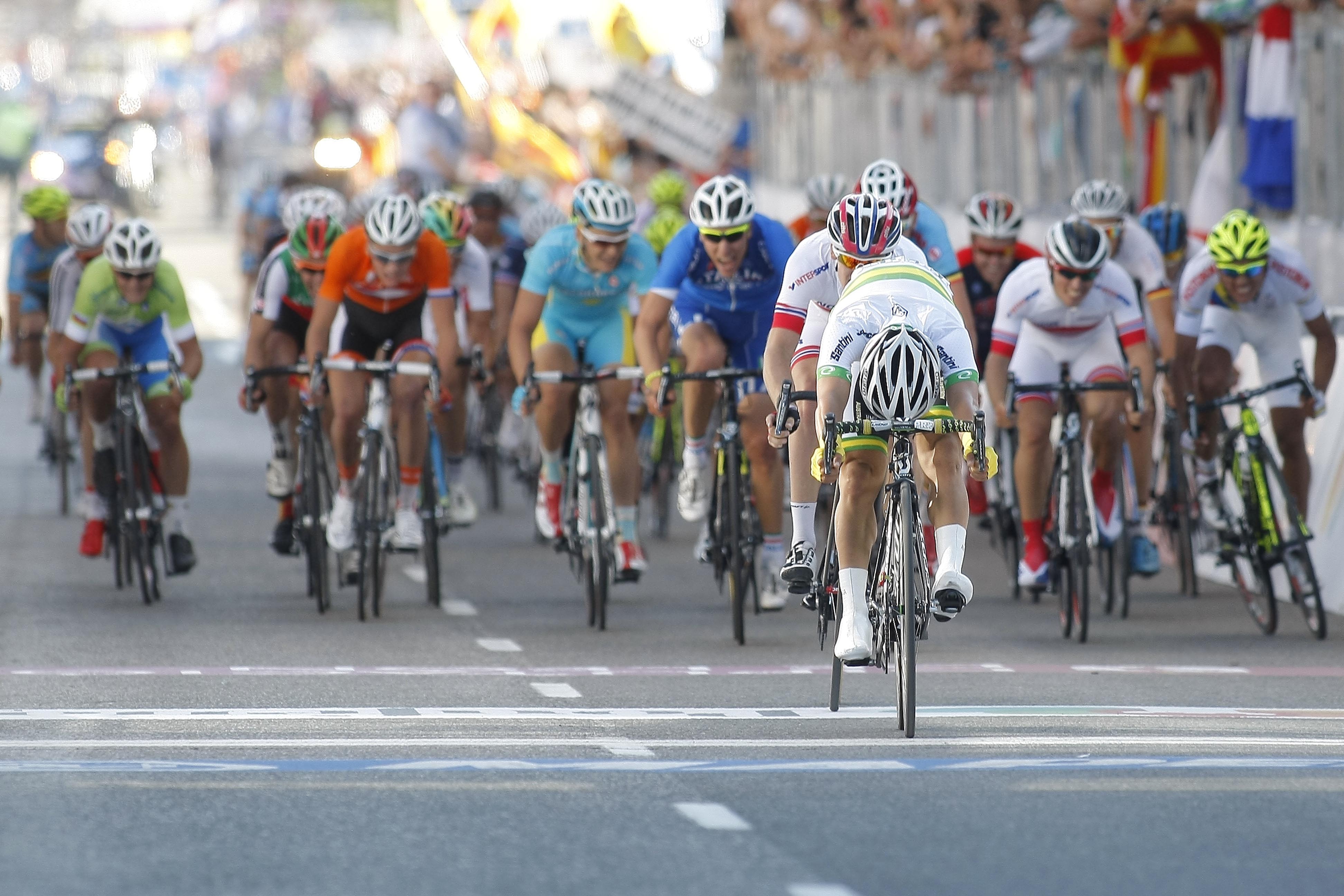 El australiano Caleb Ewan venció el sprint del pelotón para colgarse la plata por delante de otro noruego, Kristoffer Skjerping, completando casi un día perfecto para el combinado escandinavo. Quizás el menudo velocista australiano -que ya pasará en 2015 al Orica profesional- y su equipo merecieron el oro por su estajanovista y casi impecable trabajo durante 8 de las 10 vueltas finales. Y entre ellos el del campeón del mundo sub-23 contrarreloj Campbell Flakemore que llevó al pelotón kilómetros y kilómetros. Pero el ciclismo no es matemático y en esta ocasión Bystrom fue el más fuerte y también el más inteligente.