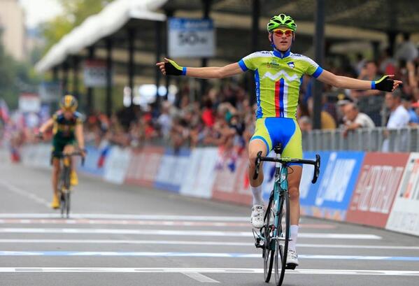 Tiene apenas 18 años pero ha sido el mejor con diferencia. El esloveno Matej Mohoric se ha convertido en el primer corredor de la historia del ciclismo que encadena dos medallas de oro consecutivas en un Mundial de fondo en carretera. Lo logró el año pasado en júnior en Valkenburg y hoy como sub-23 en Florencia. Una joya brillante que el año que viene ya será profesional en el equipo italiano -quizás estadounidense-Cannondale. Por tanto, y hasta que acabe la prueba júnior de este sábado, es el bicampeón mundial. Todo un hito que ha rubricado hoy en el exigente circuito toscano.