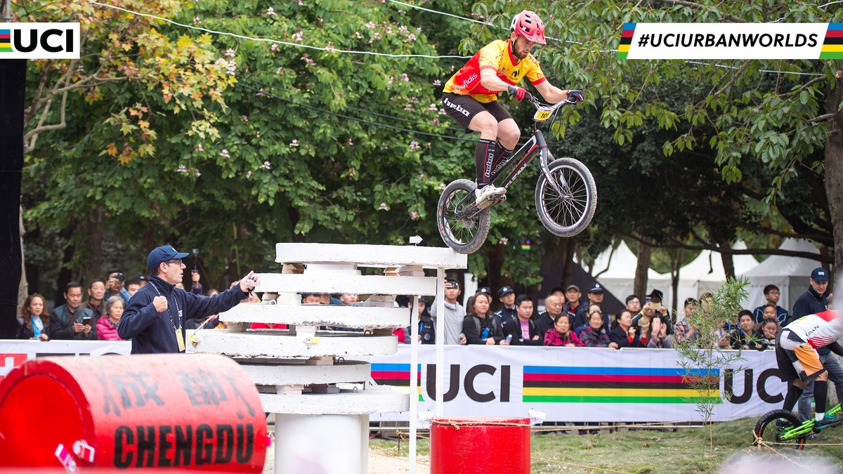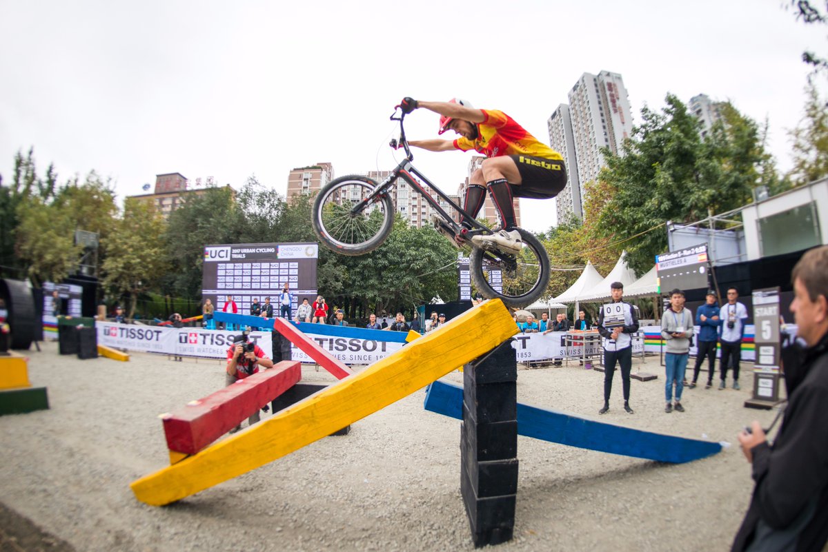 Abel Mustieles y Alejandro Montalvo son los nuevos campeones del mundo de trial elite y júnior en la modalidad de 20 pulgadas, respectivamente, después de vencer en sus sendas finales celebradas en la ciudad china de Chengdú, dentro de los nuevos Mundiales Urbanos de la UCI.