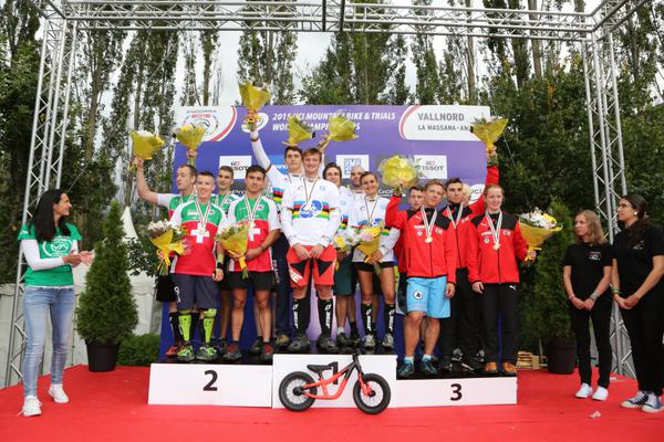 El elite 20” Benito Ros, el 26” Rafa Tibau, el júnior 20” Sebastián Ruiz, el 26” Jordi Araque y la fémina Irene Caminos compusieron el equipo español en esta ocasión. Y fue precisamente Tibau el que por culpa de un enganchón se quedó sin puntuaciones, cuando era una de las grandes bazas. Igualmente los dos júnior fueron penalizados por pasarse de tiempo en una zona. De esta forma, el equipo español, con 610 puntos, se veía superado por Francia (680), Suiza y Alemania (670).