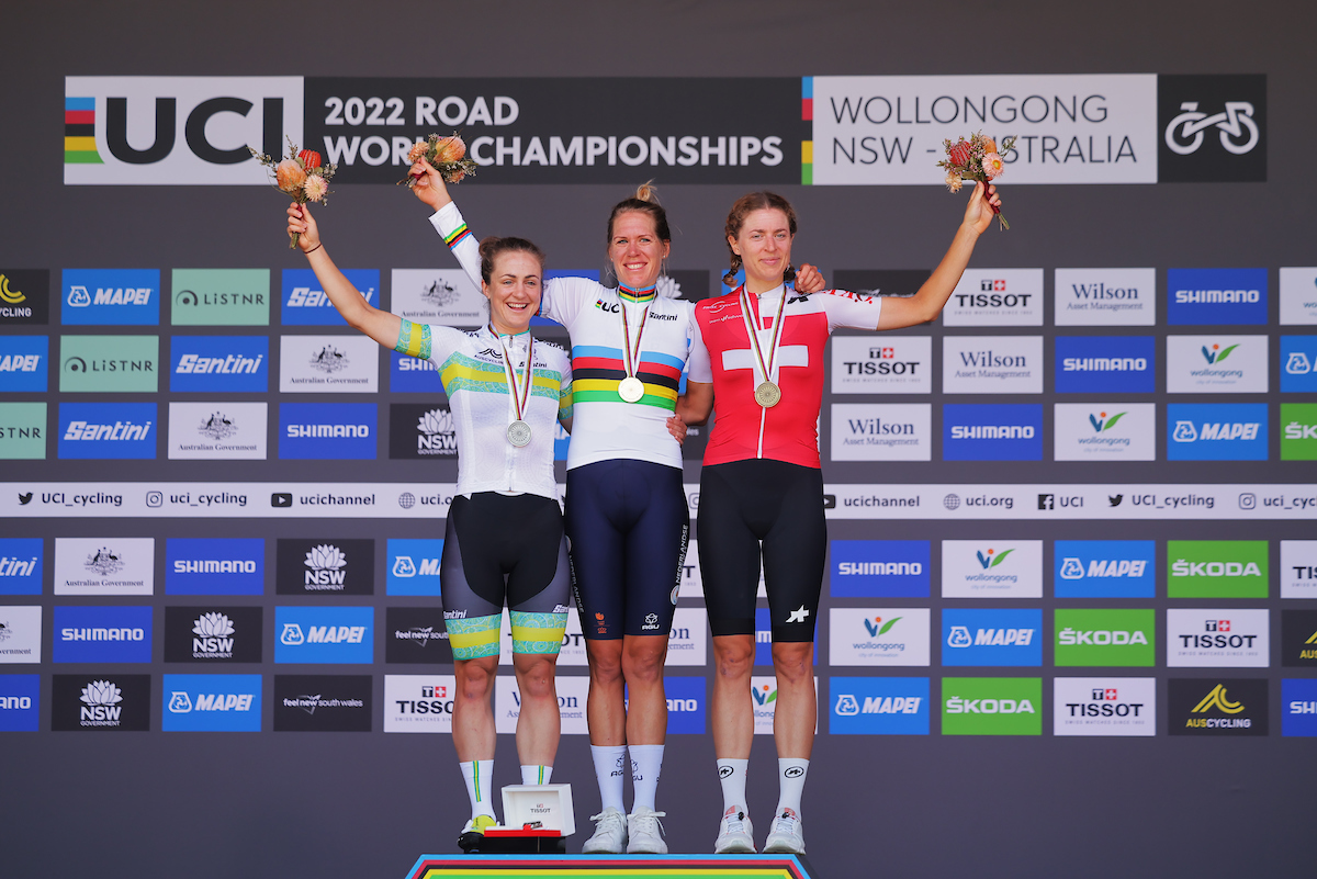 La neerlandesa Ellen Van Dijk se llevó la medalla de oro en la prueba contrarreloj de los Mundiales de Australia después de superar por 12 segundos a la australiana Grace Brown, que rozó la sorpresa después de haber salido de las primeras a realizar la prueba. La ciclista local marcó un tiempazo que fue el mejor hasta la llegada de Van Dijk, la última participante, que cruzó la meta, defendió su arco iris logrado el año pasado y certificaba su tercer título de campeona del mundo de la especialidad después de los logrados en 2013 y 2021.