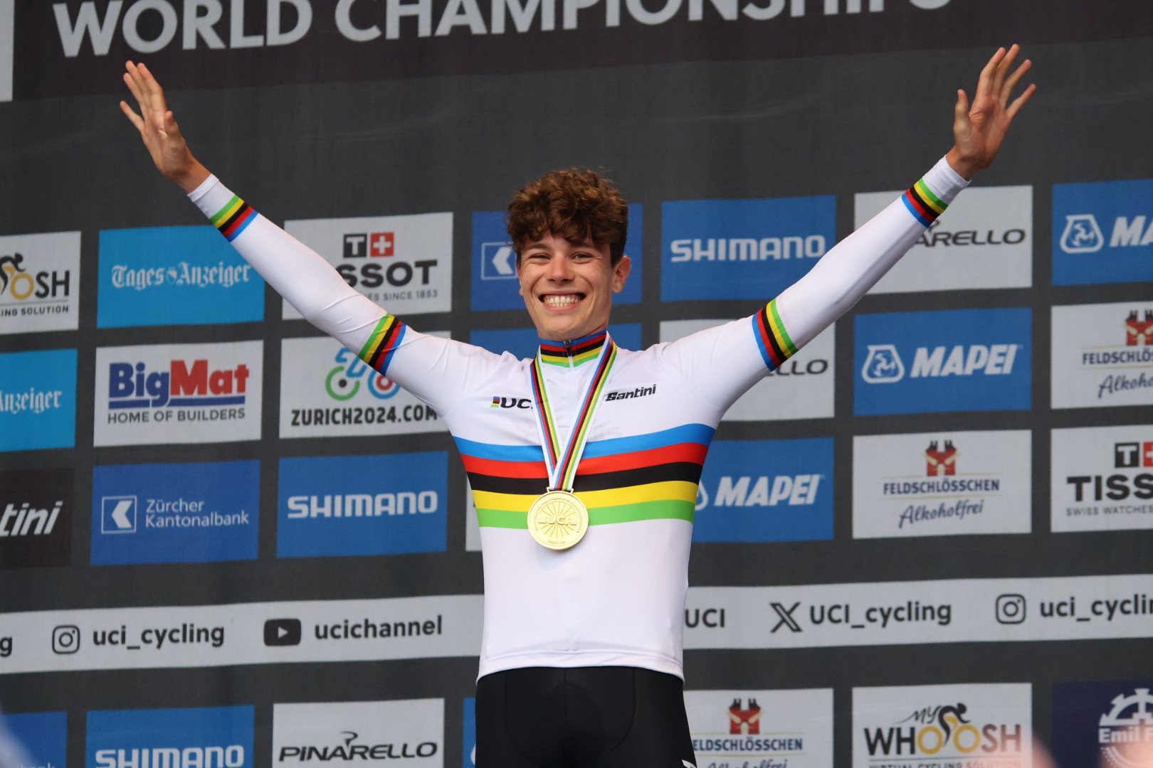 Iván Romeo: «Es el día más feliz de mi vida. No tengo palabras. Quizás para algunos sea una sorpresa, pero para mí, si soy honesto, es el premio a todo el trabajo. He trabajado muy duro para lograr esto y muy pocos lo saben, mis amigos y mi familia. He estado aquí durante dos semanas con mi padre viendo el recorrido. Era un buen recorrido para mí. Me gustaban los descensos y las subidas. Al principio del día estaba lloviendo e hice algunos descensos en mojado. Aunque tuve el mejor tiempo al llegar, pensé que otros serían más rápidos. Apreté mucho en los últimas 10 kilómetros, era el ritmo que tenía previsto, aunque no esperaba tener tanta fuerza. Pensé que Segaert me superaría, pero nunca se sabe. Sabía que mi parte final era buena, por lo que, si en el último punto intermedio estaba cerca, podía ganar. En el final de la crono se me pasaron muchas cosas en la cabeza, pero pensé en seguir dándolo todo por mi familia y toda la gente que está conmigo a diario. Solo pensaba en lo que queda y que debía seguir pedaleando. Ha sido increíble tener a mi padre junto a mí en la ‘silla caliente’. Se cogió una semana de vacaciones para estar aquí conmigo y ayudarme en los entrenamientos».