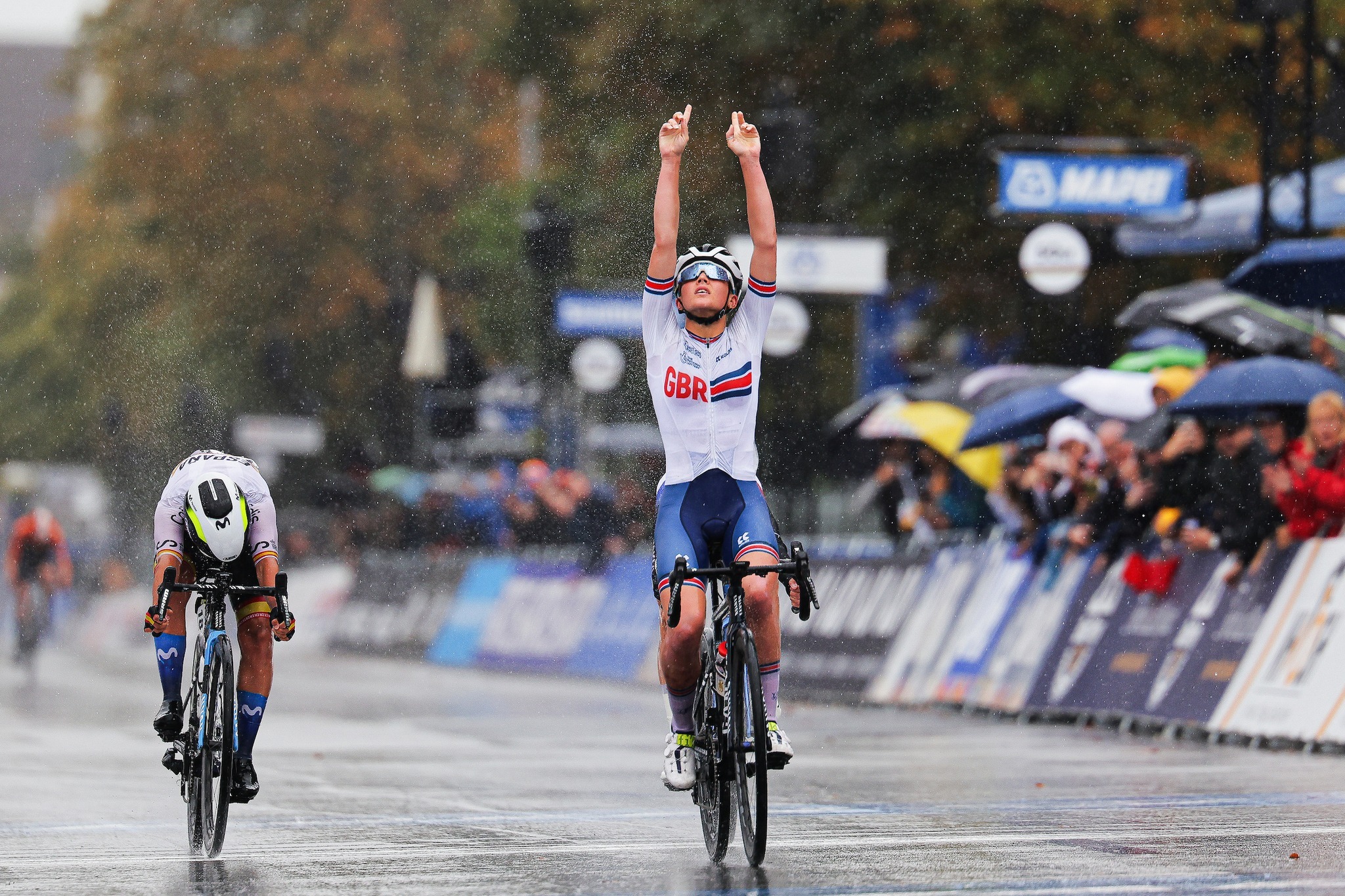 Cat Ferguson: “Estoy realmente feliz. Siempre quise ser campeona del mundo en carretera. El año pasado quedé segunda y eso me dolió mucho. Ganar ahora es realmente increíble. No sabía exactamente cuál era nuestra ventaja sobre las primeras perseguidores. Sabía que teníamos alrededor de un minuto cuando faltaban cinco kilómetros. Estábamos yendo muy despacio. De repente vi aparecer a Megan Arens y entonces pensé que debería iniciar el sprint yo misma. No quise correr más riesgos y salió bien. Sabía que era la más rápida. Tenía confianza en mi sprint. Estoy muy feliz y también agradecida con mis compañeros. Realmente me ayudan. No es sólo mi victoria, sino también una victoria para el equipo”.