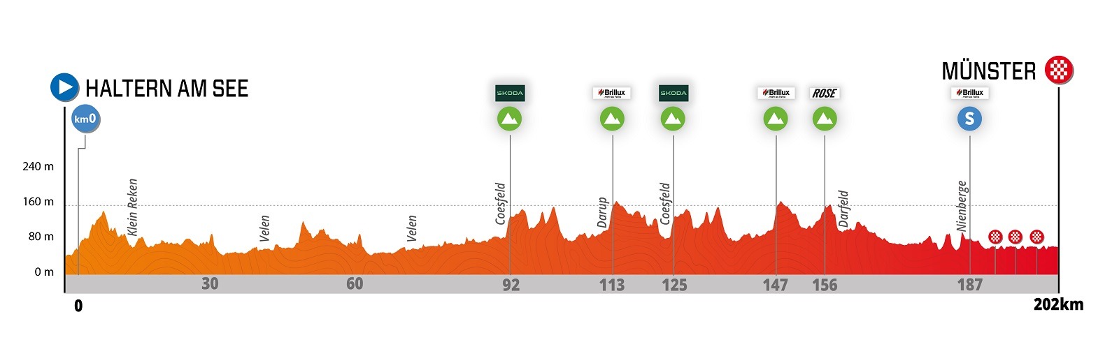 Aunque si de belgas hablamos, la sorpresa negativa de la carrera fue Arnaud de Lie, que venía de ganar en Binche y esta vez se quedó fuera del top-10. Laporte, que había entrado a última hora en esta carrera, no parecía estar en la mejor forma para disputar la prueba, y Jakobsen sumó la enésima prueba en la que no logra ni siquiera acabar la carrera. Los sprinters nunca vieron amenazada su opción de disputar la victoria dentro del circuito final en Munster, al que se llegó con la fuga del día ya absorbida por el pelotón. Un grupo integrado por Adriern Maire (TDT), Jannik Steimle (Q36.5), Tosh Van der Sande (Visma), Arno Claeys (Flanders), Jarno Grixa (P&S Metalltechnik) y Luca Dressler (Lotto Kern-Haus). Este último ganó el premio de la montaña, principal aliciente para los escapados.