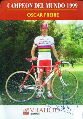 Al final de aquella temporada, y de un modo inesperado, en Verona, Freire, con la casaca de la selección nacional lanzaba un demarraje en el último kilómetro y se imponía en el Campeonato del Mundo. Una alegría tan inusitada como desatada. El arcoíris apenas pudo lucirlo en Vitalicio, ya que ficharía ese mismo año por Mapei.