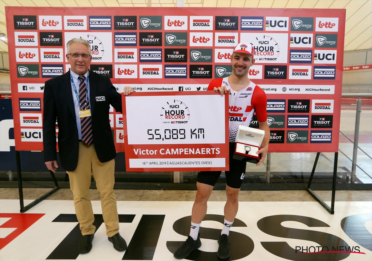 El belga Victor Campenaerts (Lotto) es el nuevo plusmaquista de la hora, al haber concluido con éxito su tentativa en el velódromo Bicentenario de Aguascalientes (México). Con una distancia final de 55,089 kilómetros superaba por más de medio kilómetro los 54,526 que figuran como plusmarca desde el 7 de junio de 2015 en poder del británico Bradley Wiggins, que había apostado porque el belga iba a lograrlo.