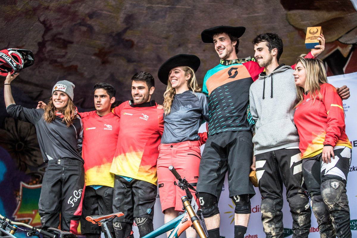 La entrega de premios ha sido una fiesta donde aficionados locales han llenado la plaza de Rekalde. El aurresku de honor hecho por el grupo de baile del barrio ha dado colofón final a una nueva edición de ensueño del Bilbao Downhill.