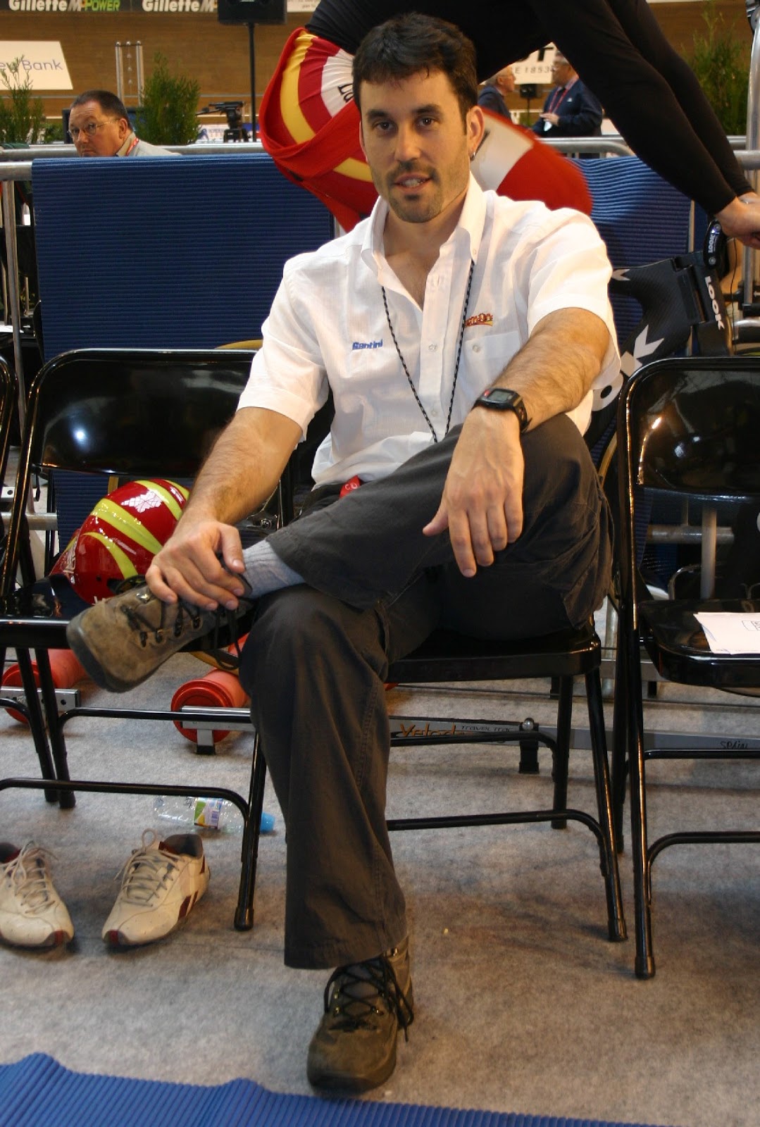 “Claro que he rodado al revés más de una vez, soy velocista -nos dice un José Antonio Escuredo que no puede contener la risa-. Incluso he lanzado un 200, aunque parecía un novato. La sensación es como si fuera la primera vez que ruedas en pista, te da la sensación de que te vas a caer, después a medida que vas rodando coges más confianza y bajas la velocidad, pero nunca es igual, porque lo tienes mecanizado de hace muchos años. Eso demuestra la importancia de la especialización del gesto deportivo porque tus reflejos, fuerza… son los mismos, pero nada que ver al cambiar la dirección”.