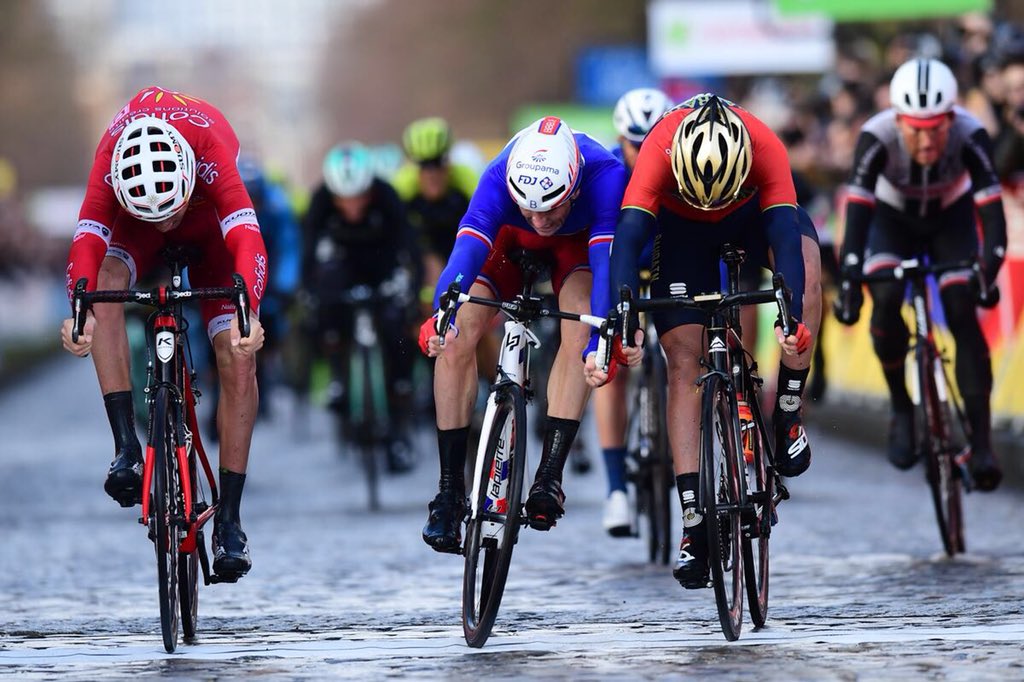 Tras ese reagrupamiento, la dureza de la subida final y lo complicado y peligroso de la aproximación provocaron que nadie se atreviera a tratar de romper el control que al frente del pelotón estaban planteando, sobre todo, los Lotto-Soudal, Quick Step Floors, Astana y Groupama-FDJ.