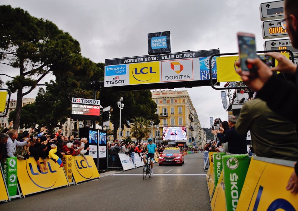 Comenzaban entonces los nueve kilómetros finales de descenso hasta la línea de meta del Paseo de los Ingleses. Izagirre era ya inalcanzable y se encaminaba hacia su primera victoria de etapa de este 2019 (segundo triunfo tras la general de la Comunitat Valenciana) que acababa con una sequía de más de año y medio tras aquel triunfo en la 20ª etapa del Tour de Francia de 2016.