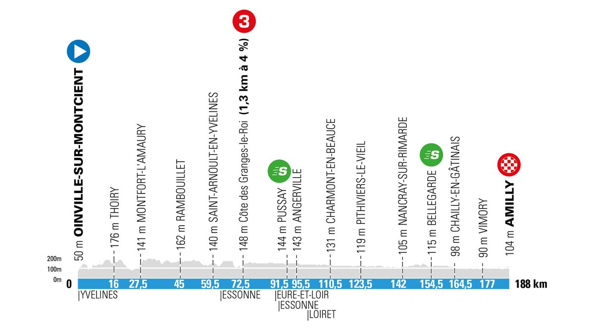 Trek-Segafredo y el Groupama-FDJ tomaron la iniciativa a cinco kilómetros de la meta en Saint-Cyr-L’École.Al comienzo del último kilómetro se produjo una caída en la parte delantera del pelotón, acumulando hasta tres montoneras en los últimos 20 kms, pero la mayoría de los velocistas estaban bien situados en la parte delantera. Pascal Ackermann llegó bien pero no pudo terminar en el sprint anticipando su opción. Sería un Sam Bennett tocado por la barita mágica quien tuvo las piernas más rápidas para ganar con diferencia y enfundarse el primer amarillo de la prueba.