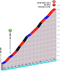 En los últimos años, la París-Niza ha ido a la altitud el sábado y la carrera vuelve al puerto de Turini (14,9 km a 7,3%) tres años después de una etapa que coronó a dos colombianos, Dani Martínez para los honores del día y Egan Bernal para la general. La última subida será el punto álgido de la jornada, ya que ese día sólo hay una subida menor, la de Coursegoules.
