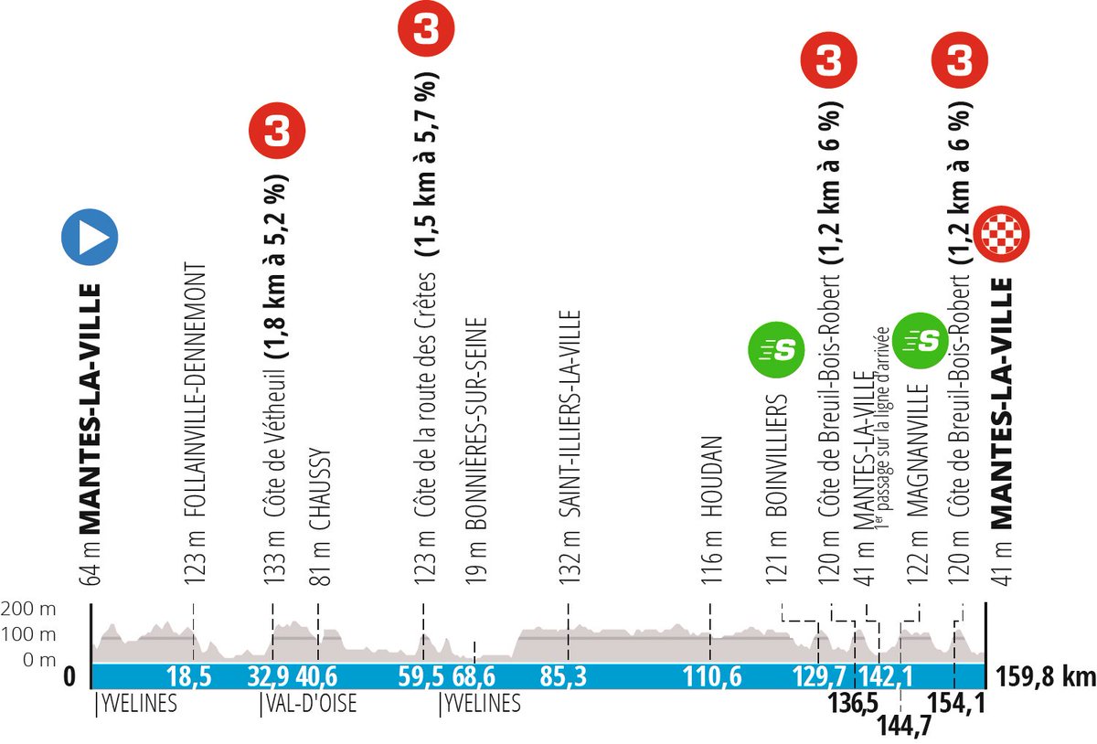 Aunque el departamento de Yvelines acogerá por decimotercera vez consecutiva la primera gran carrera por etapas de la temporada, la zona sigue teniendo suficientes giros para sorprender a los corredores una vez más. El objetivo es, una vez más, no ponérselo demasiado fácil a los esprinters y los sectores azotados por el viento en torno a Houdan deberían ser ideales para las escaramuzas, mientras que el bache de Breuil Bois Robert, a 6 km de la línea de meta, podría ser una plataforma de lanzamiento perfecta para un último ataque.