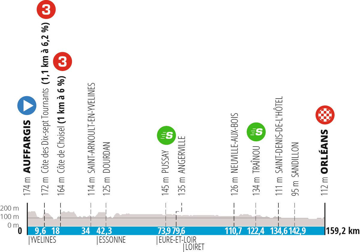 La pregunta para las dos próximas etapas es la misma que la habitual, cuando el pelotón atraviesa las llanuras de la cuenca parisina, la Beauce y este año Indre y Creuse, una región que no se visita desde 1996: ¿esprint de grupo o escalones? El tiempo lo decidirá, teniendo en cuenta que el amplio final de la etapa 2 en Orleans podría convenir más a los sprinters que el final en Dun-le-Palestel, donde la etapa 3 terminará tras 44 km de un circuito montañoso.