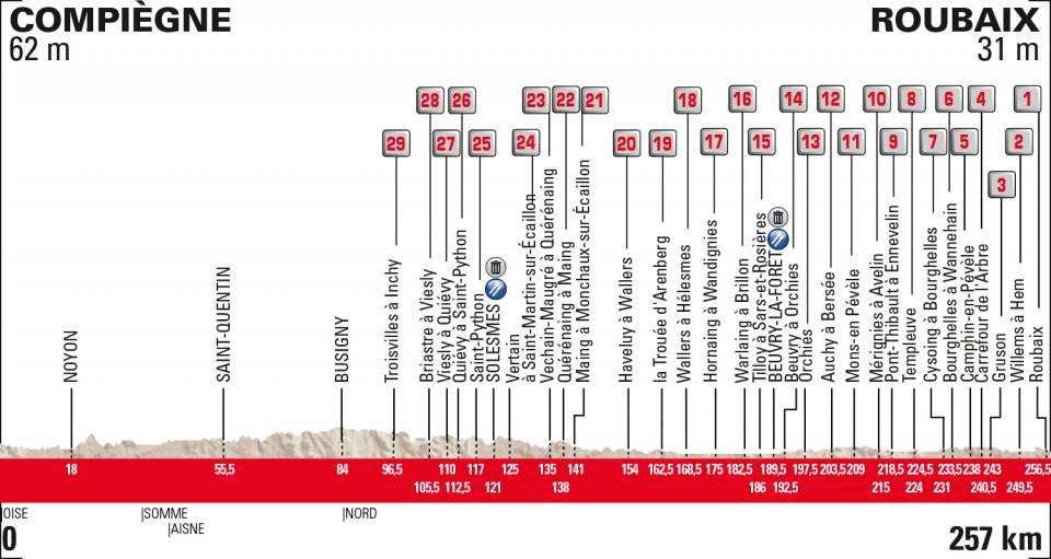 Pero, como siempre, todo aquello no era más que lo anecdótico, lo accesorio ante la que estaba todavía por caer. El pelotón, los 174 corredores que tomaban la salida desde Compiégne (no lo hizo Gaviria, que enfermó durante la noche), iba atacando sectores y cada vez eran menos los que aguantaban con los mejores. Una repetición, al fin y al cabo, de las 116 ediciones ya disputadas de este Infierno del Norte que cada año, siguiendo el mismo guion, nos depara carreras absolutamente distintas. Esa es, no cabe duda, la magia de una de las pruebas más sencillas del año: lo único que tiene que hacer el hombre que la quiere ganar es mantenerse sobre la bicicleta, siempre entre las primeras posiciones, sin sufrir ni un solo contratiempo y siendo el más fuerte de todos. Fácil, ¿verdad?