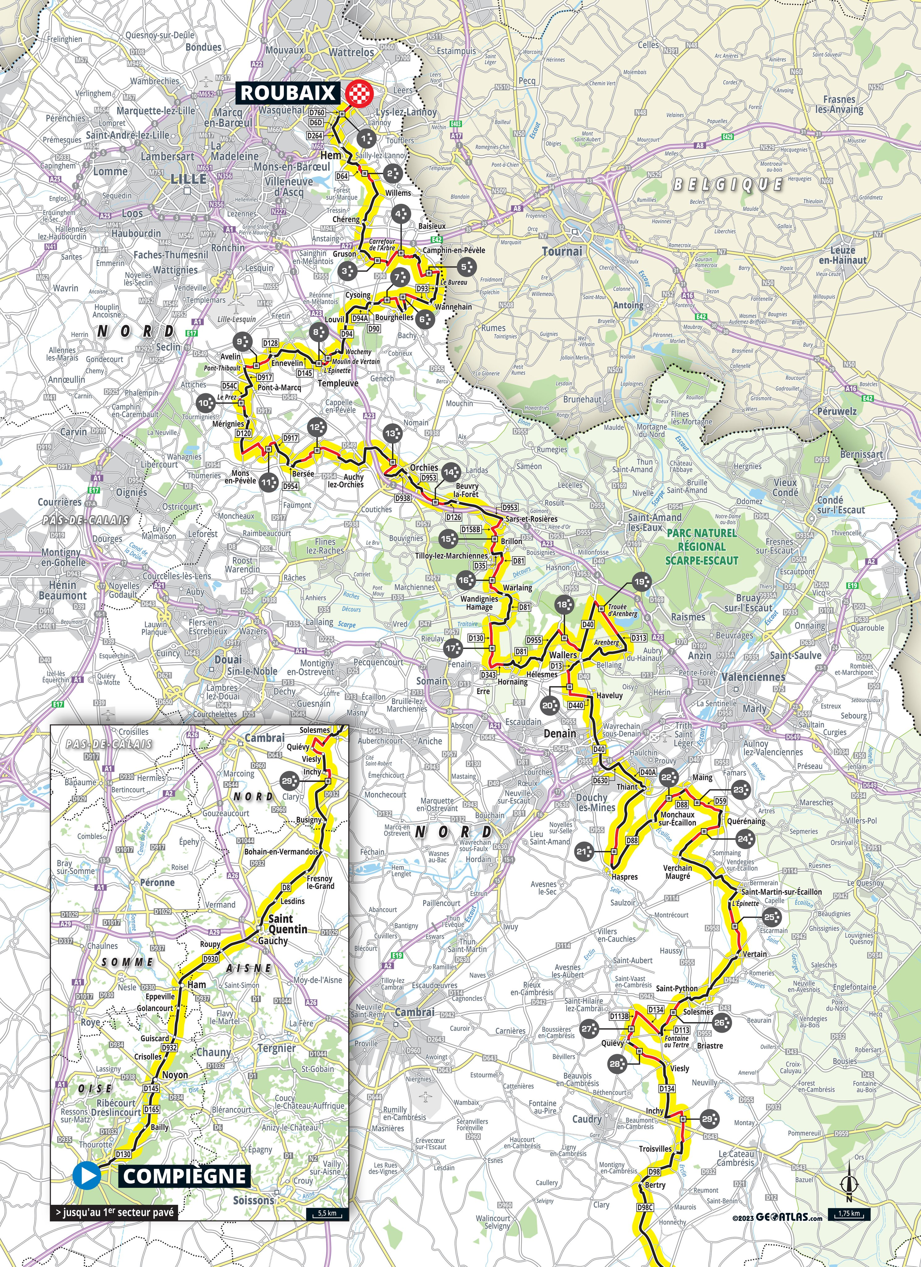 Fue en el mítico Carrefour de l’Arbre dónde Van der Poel dejó sentenciada la carrera. Philipsen preparó el terreno y el neerlandés arrancó no sin antes tocarse con John Degenkolb que terminó por los suelos y con sus opciones de victoria arruinadas. Esa maniobra la aprovechó Van Aert para atacar. Van der Poel, que había perdido unos metros, tuvo la fortaleza de alcanzarle y de soltarle con ayuda de un inesperado pinchazo que dejó a Van Aert en la estacada. El corredor de Alpecin no volvió a ver a ninguno de sus rivales hasta el velódromo dónde cruzó la meta en primera posición y pudo disfrutar del 2º puesto de su compañero Philipsen que se impuso a Van Aert (3º). Iván García Cortina fue el mejor español en meta ocupando la 32ª plaza.