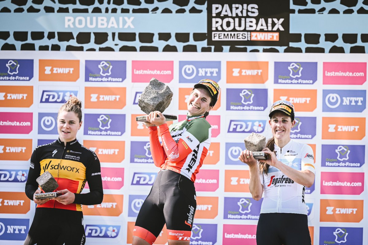 Elisa Longo Borghini: «Fue puro instinto para atacar. Vi que la escapada estaba cogida y pensé que era un buen movimiento para estar en la parte delantera y poner a Lucinda en la mejor posición para seguirme, y hacer que SD Worx me persiguiera. Por lo tanto, a partir de ahí me puse a tope. El comienzo de la temporada no fue ideal, tuve sinusitis y no podía respirar. Tuve que dar un paso atrás para poder avanzar. Me salté la Amstel y la Flecha de Brabante porque tuve que tomar antibióticos. No tenía que venir aquí, así que no tenía ninguna presión. Pero lo hice todo bien este invierno, y simplemente estuve enferma durante toda la primavera y no pude rendir como se supone que debo hacerlo. En cuanto me recuperé, rendí bien. Seguramente las condiciones meteorológicas eran completamente diferentes, pero no fue una carrera fácil. Había mucho polvo en la carretera y en los adoquines. Intenté ir solo, porque así puedo elegir mis líneas. Era diferente, pero no más seguro. Es Roubaix, ¡eso es todo! Entrar en el velódromo es una sensación increíble. Es como atravesar el infierno dantesco, y de repente estás en el paraíso, y puedes disfrutar de verdad. Todavía no me lo creo del todo».