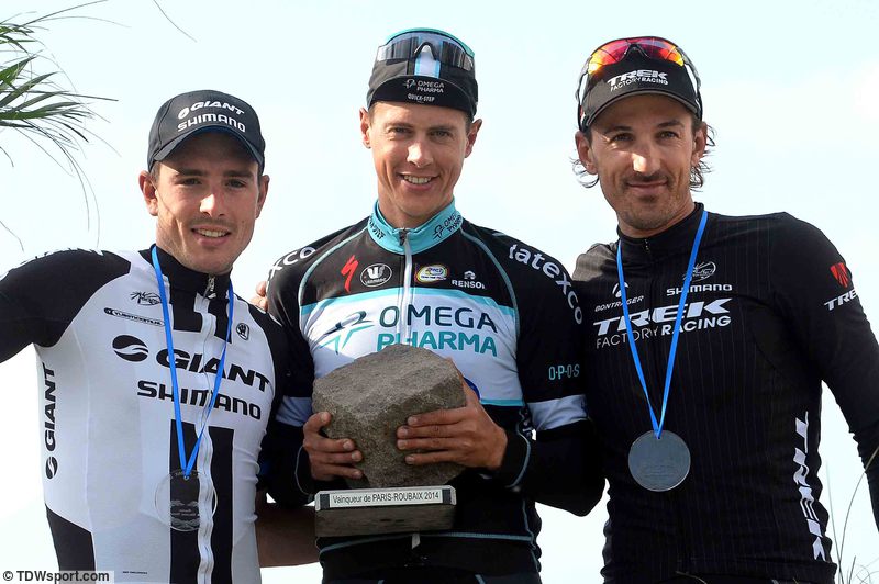 John Degenkolb (2º): «Este es el mejor resultado que podía conseguir. Tuve un problema mecánico grande que me hizo perder mucha energía para remontar. Afortunadamente, Bert De Bakker logró aguantar en el grupo con Tom Boonen. Juagmos inteligentemente, porque sin él no habría hecho el sprint final para el podio. Por supuesto, perdimos la victoria. Cuando Terpstra se fue fallamos en la elección. Es lu pasa cuando equipos como el Omega Pharma-Quick Step tenía una ventaja considerable con tres corredores. Pero podemos estar muy orgullosos de este segundo puesto. Para nosotros, es un paso adelante el estar en el podio de un monumento. Y para mí, aunque, por supuesto, es siempre mejor ganar como lo he hecho en Gante-Wevelgem, puedo decir que estoy muy feliz, sonrío por dentro y disfruto esta segunda posición».