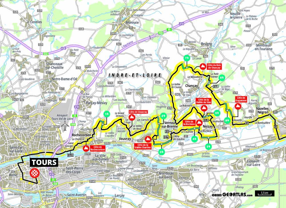 Valentin Madouas (Groupama) atacó una y otra vez hasta que un grupo de seis perseguidores se escapa a falta de 16 kilómetros. Entre ellos, Arnaud Démare (Groupama) y Jasper Stuyven (Trek) descuelgan a sus rivales en la última subida del día, la côte de Rochecorbon tras un ataque estéril de Roger Adrià (Kern Pharma) que podría haber desbancado a su compañero José Félix Parra del liderato del TOP Ciclo 21 al mejor sub-26 español del año.