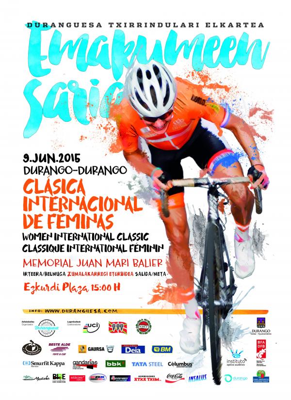 La prueba dará comienzo a las 15:00 en la Plaza de Ezkurdi y tras 110 kms. de recorrido se conocerán las ganadoras en torno a las 18:00. El recorrido será cuatro vueltas al circuito Durango-Iurreta-Abadiño-Berriz-Alto de Miota-Elorrio-Atxondo-Abadiño-Matiena para terminar con una vuelta ‘larga’ al circuito Iurreta-Arriaundi-Alto de Montekalbo-Urrutxua-Zugastieta-Alto de Muniketas-Arriaundi-Iurreta-Durango.