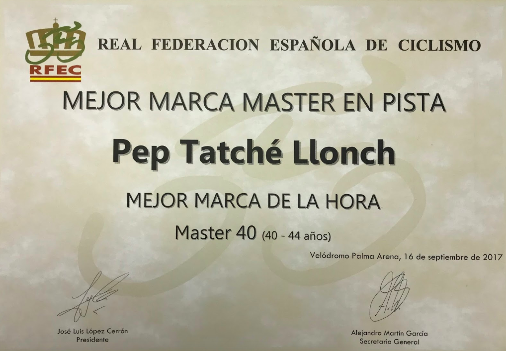 Sin embargo, han sido varios los ciclistas que han superado la antigua plusmarca de Palavecino, todos ellos de la categoría master, pero con las mismas condiciones que si fuera un record absoluto, en cuanto a presencia arbitral y control antidopaje incluido, salvo en el cronometraje electrónico. Y de todos estos plusmarquistas, es Pep Tatché, master 40-45, el ciclista español que ha cubierto una distancia mayor, concretamente 46,273 kilómetros, el 15 de septiembre de 2017 en Palma, por lo que podría ser considerado el Campenaerts español.