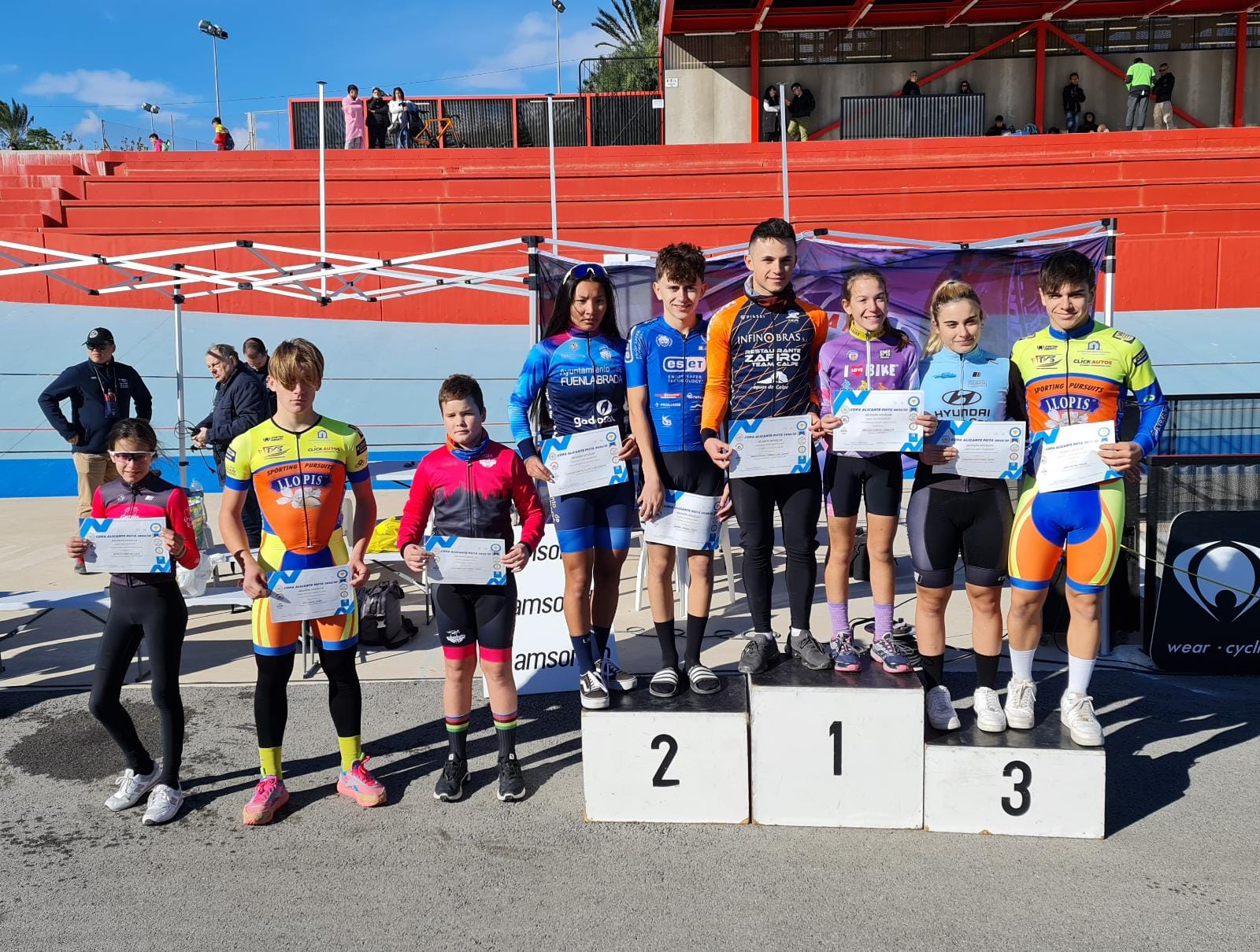 El élite Alejandro Gómiz (Superfroiz), el sub23 José Segura (Infinobras-Zafiro Team), los juniors Oleg Melnikov (GD Llopis) y Claudia Xiangfeng Galiano (UC Fuenlabrada), los cadetes Alejandro Callado (GD Llopis) y Leyre Toledo (Hyunday-Koryo Car-Dstrel), los infantiles Alejandro Sánchez (EC Ontur) y Adriana Segura (CC Almoradí) y los alevines Pablo Sánchez (EC Ontur) y Sara Gimeno (Granja Rinya) han sido los vencedores finales de la Copa Alicante de pista 2022-AM Sonido-Sporting Pursuits, tras la disputa esta mañana en Novelda de la última puntuable.