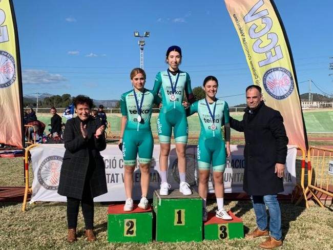 La versión femenina fue un mano a mano entre las Teika-Granja Rinya Vera Valero y Leyre Almena. La primera ganaba scratch y eliminación, y la segunda, la tempo, para sentenciar en la puntuación por un solo punto: 133 a 132. El bronce, para otra compañera, Leyre Toledo, con 124.
