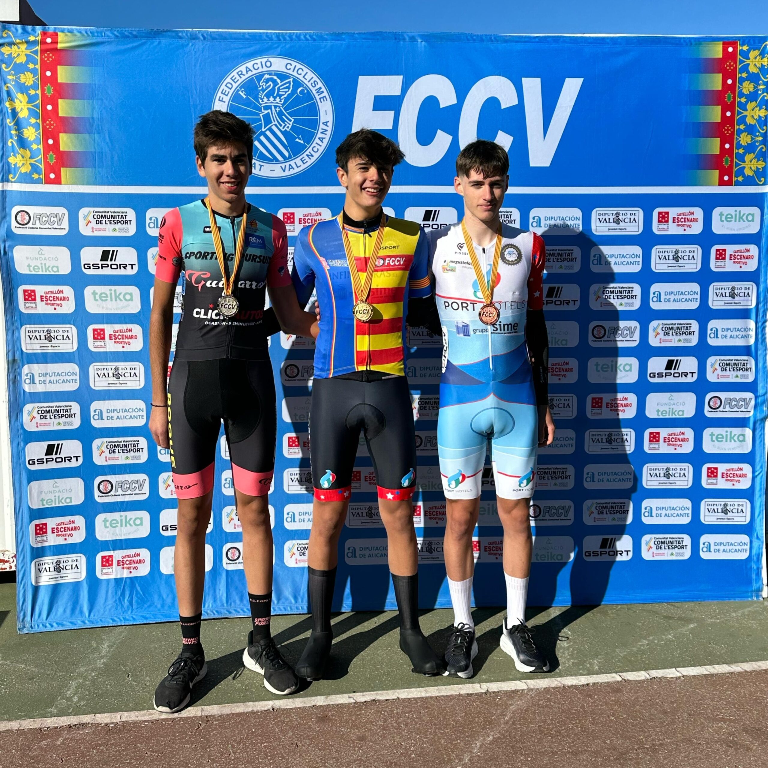 El sub23 Sergio Serrano (Bathco), los juniors Mateo Mateev (Valverde Team) y Leyre Almena (Teika-Granja Rinya), los cadetes Asier Fortea (Infinobras-Grupo SIME) y Amanda Miravet (Universidad Politécnica de Valencia), los infantiles Karles Cubedo (Talleres Grañana) y Adriana Segura (CC Almoradí) y el alevín Eugenif Melnikov (CC San Vicente) se han proclamado esta mañana campeones de la Comunitat Valenciana de omniun, en el transcurso de la cuarta prueba de la Lliga de Pista de la FCCV, el ‘XIX Trofeo San Vicente Cree en Ti’, celebrada en el velódromo Manuel Guijarro de San Vicente del Raspeig.