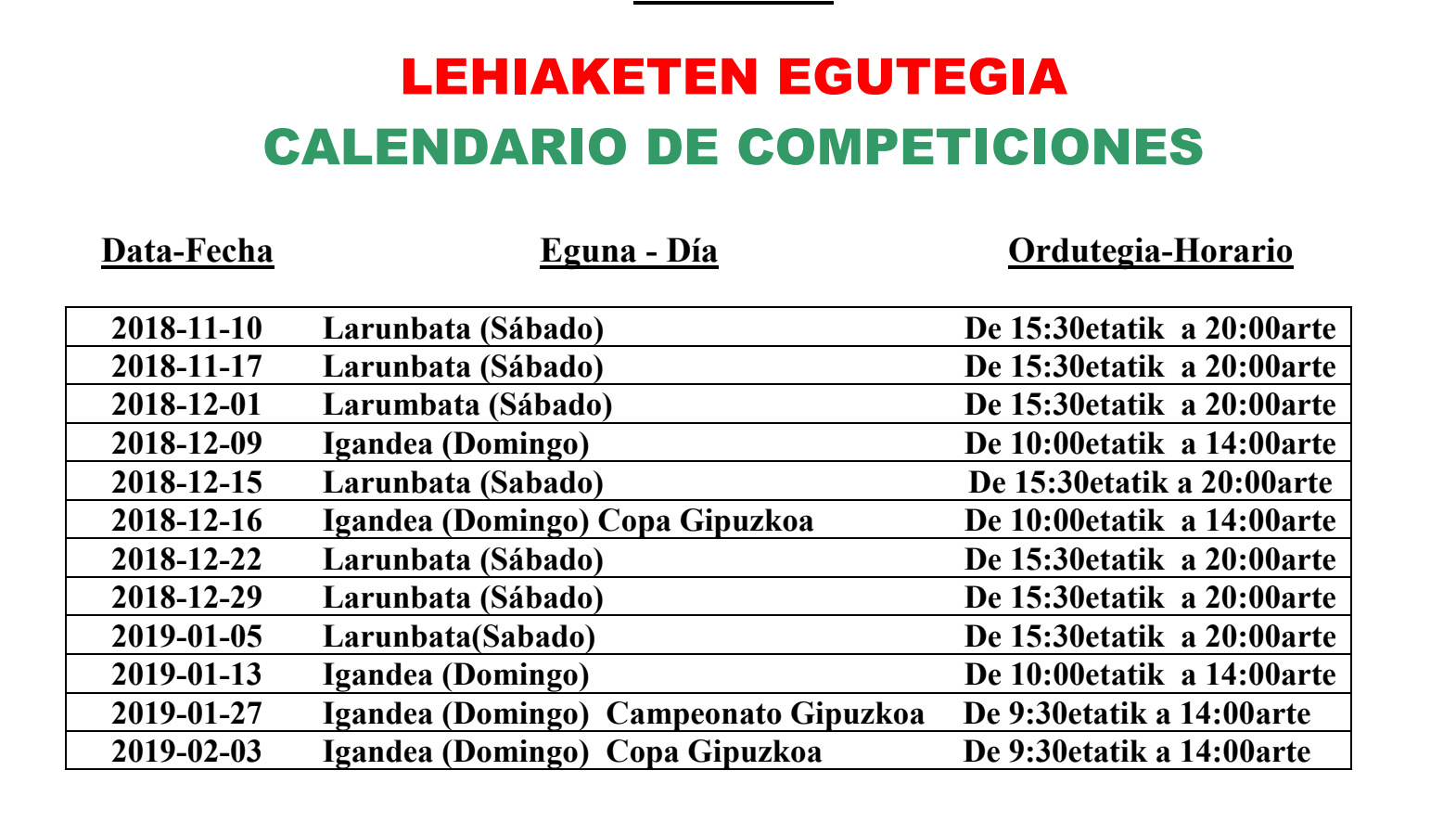 Los días 16 de diciembre y 3 de febrero se disputará la Copa de Gipuzkoa y el día 27 de enero se disputarán los Campeonatos de Gipuzkoa.