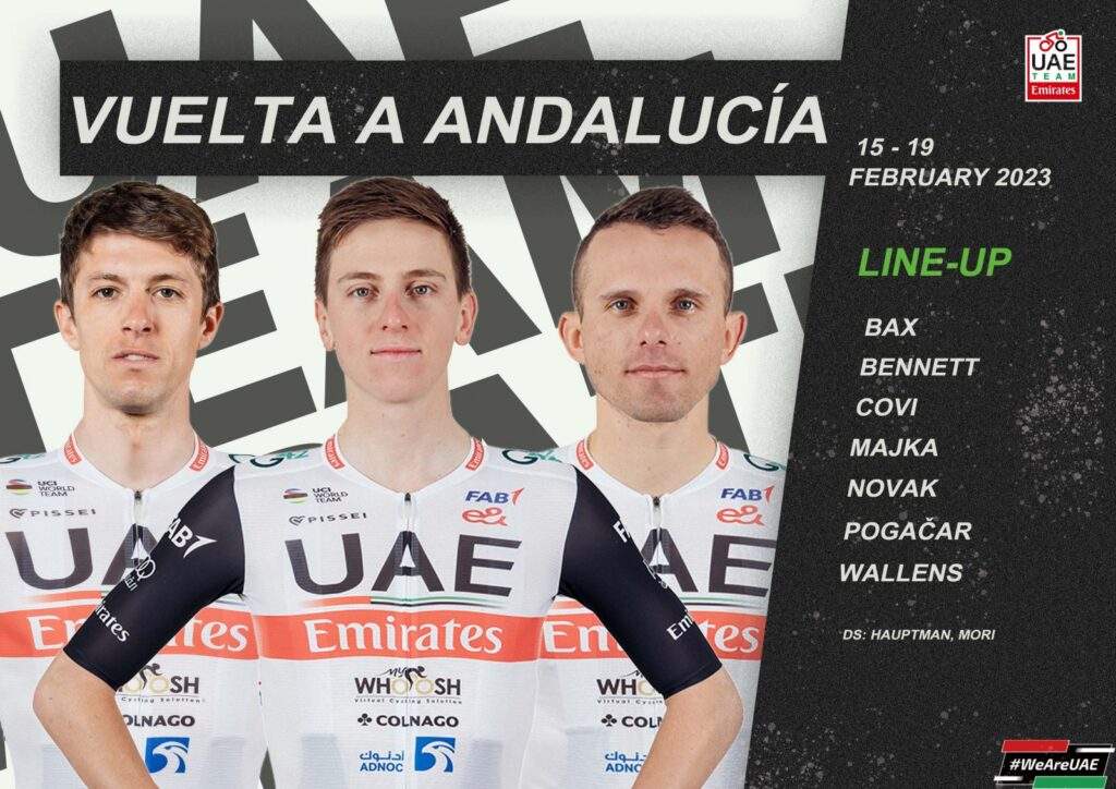 Joxean Matxin Fernández, el mánager deportivo, explicó el cambio de calendario. «Para Jaén y Andalucía tenemos un equipo muy experimentado que creemos que puede hacer grandes cosas. Obviamente el aspecto de grava de Jaén hace que sea un buen lugar para nosotros para probar material y bicicletas, por lo que es una carrera que ofrece mucho. Pero, por supuesto, como en cualquier carrera que hacemos, también estamos allí para aspirar a la victoria. Llevamos una lista con mucha calidad que estará encabezada por Pogačar, que también debutará aquí esta temporada. Aunque tenemos muchos corredores en el equipo que pueden dar un paso adelante para conseguir un gran resultado.