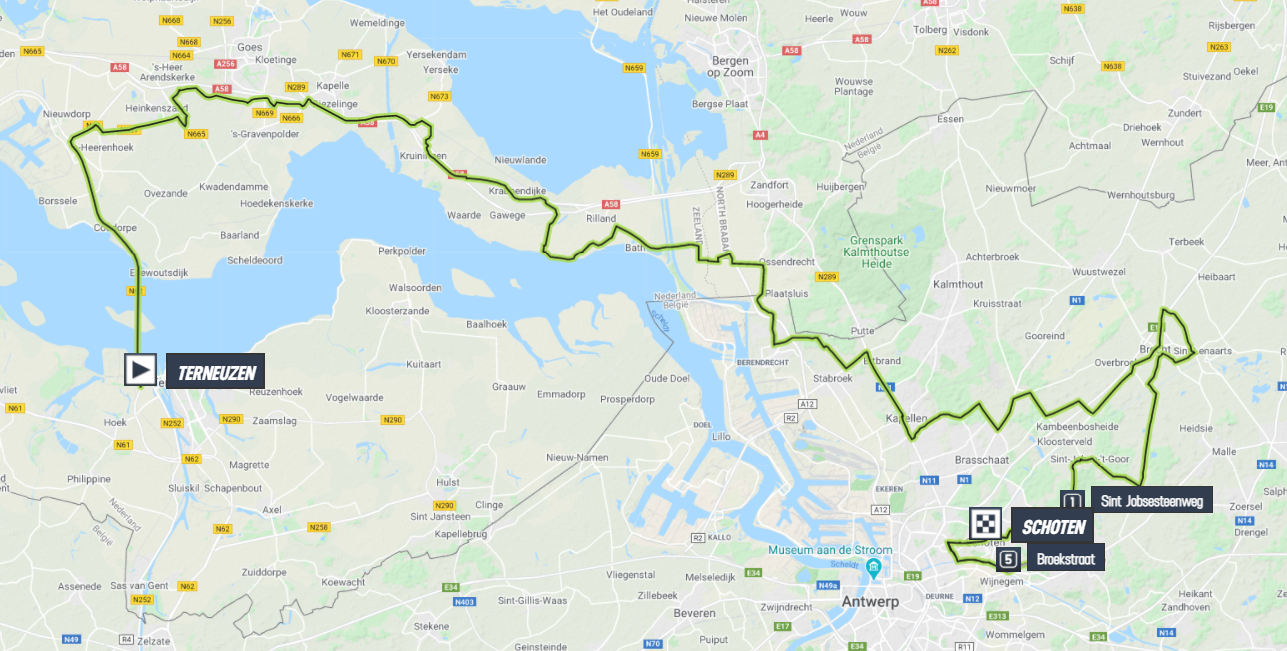 Mientras que sólo unos centenares de kilómetros más al sur las autoridades francesas han optado por no dar luz verde a la celebración de la París-Roubaix en su fecha prevista, sus homólogas belgas y neerlandesas optaban finalmente por permitir que el Premio Escalda siguiera siendo, también en 2021, una prueba transfronteriza manteniendo la salida en Terneuzen y la meta en Schoten con ese trazado, casi siempre paralelo al cauce del río Escalda, que completa un total de 194,2 kilómetros.