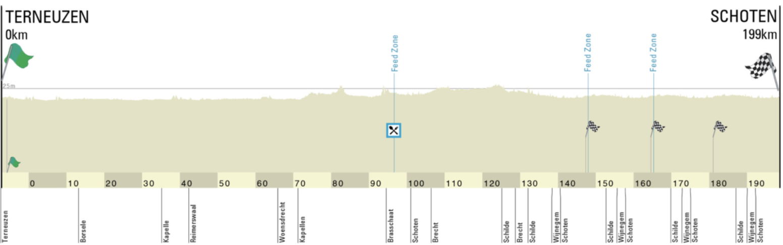 Tan solo 30 ciclistas llegaron a meta en una clásica belga que se caracteriza tradicionalmente por su resolución al sprint, al contar únicamente con un tramo de adoquín de menos de un kilómetro, que se cruza en las cuatro vueltas al circuito, como principal dificultad. Esta treintena valientes que no se bajaron de la bicicleta a pesar de la lluvia ejemplifica la dureza de una prueba que se decidió prácticamente de salida. O al menos delimitó mucho quienes podrían aspirar al triunfo.