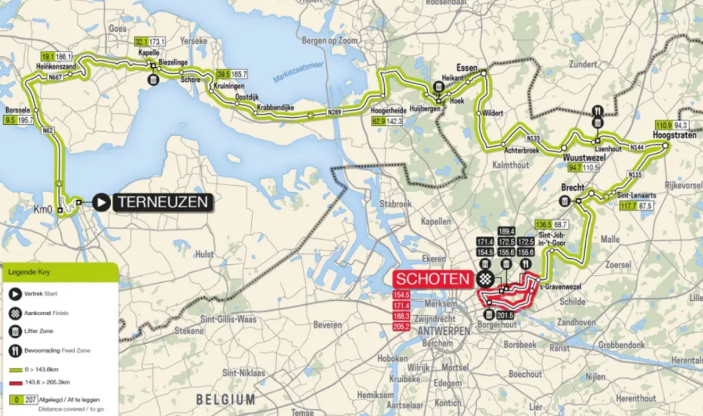 La carrera estuvo marcada por la composición de dos escapadas. Una primera originada en la primera mitad formada por cinco corredores que no contaron con el beneplácito del pelotón. En medio de la persecución, Intermarché perdió a Gerben Thijssen -uno de los favoritos- y a Arne Marit por culpa de una dura caída. Neutralizados a 145 km del final, volvieron otros cinco ciclistas a marcharse a falta de 100 kilómetros para la meta. Axel Huens (TDT), Vincent Van Hemelen (Flanders), Liam Slock (Lotto), Stijn Appel (Beat) y Baptiste Planckaert (Intermarché) fueron en esta ocasión quiénes se marcharon. Su andadura se mantuvo viva hasta los últimos 10 kilómetros, en un momento en el que el pelotón marchaba a gran velocidad. En esos instantes, Tim Merlier, sufrió una avería mecánica que le obligó a cambiar de bici. Sin embargo, nada ni nadie pudo con el esprínter de Soudal que sumó el 7º triunfo de la temporada.