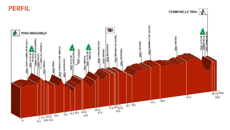 Portugal será protagonista de la segunda etapa de la ronda ciclista castellana y leonesa. Braganza acogerá la salida de una jornada que se desarrollará a lo largo de 170,6 kilómetros y que acabará, tras transitar más de 100 por territorio portugués, en la meta de la localidad zamorana de Fermoselle. Los altos de montaña de Rosas, de Santulhao y de Vimioso, de tercera categoría, y el Alto de segunda categoría, Fermoselle a escasos tres kilómetros de meta serán las dificultades montañosas de la jornada.