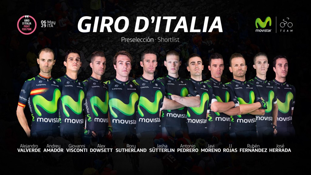 Eusebio Unzue maneja una lista de once ciclistas para el 99º Giro de Italia (9-31 de mayo), con Alejandro Valverde a la cabeza de Movistar en su primera participación en la ‘Corsa Rosa’.