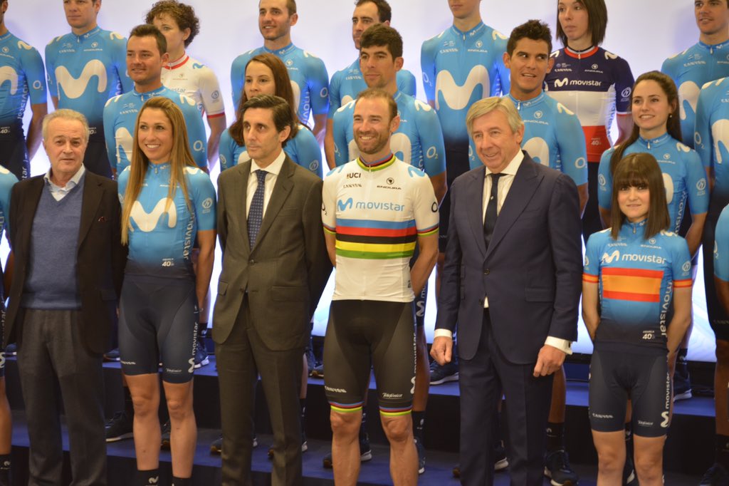 La presentación del Movistar Team 2019 ha contado con la presencia de 24 corredores de la plantilla masculina y las 12 integrantes de la femenina. En los hombres, ha destacado la ausencia del colombiano Carlos Betancur -con contrato en vigor para 2019- así como la de Jaime Rosón, suspendido provisionalmente tras su resultado adverso conocido hace seis meses.