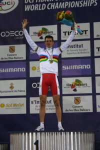 Volviendo al maillot arco iris, decir que, en 1996, rompió su uniformidad para incorporar un elemento distintivo según la modalidad ciclista. En la pista fue una ruptura en C invertida sobre las franjas que recordaba a los virajes del velódromo. Sin embargo, en 2016 se recuperó el mismo diseño para todas las disciplinas, que en el caso de la pista son 20 como ya sabéis todos, aunque aumentarán a 22, con la inclusión de la eliminación, en los próximos Mundiales, tanto juniors este verano en El Cairo como élites en otoño del 2021 en Ashgabat.