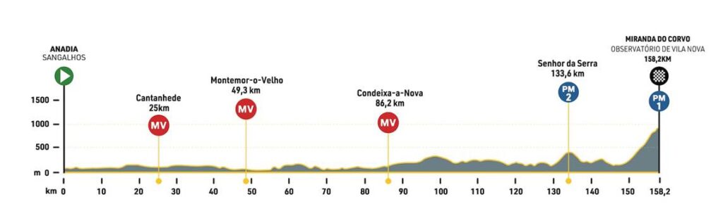 1ª: Jueves 25 julio. Sangalhos (14:15)-Observatório de Vila Nova (18:38), 158,2 kms