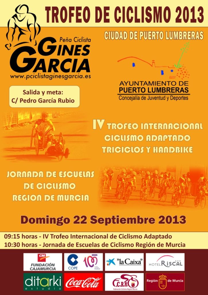 “Con la celebración de este Campeonato seremos testigos del buen ejemplo y la superación de los deportistas participantes. Puerto Lumbreras es un municipio comprometido con el deporte y continuamos colaborando con este evento que estimula el desarrollo del deporte adaptado en todo el territorio nacional”, añadía el concejal de Juventud y Deportes, José Aragón. Por su parte, Joaquín López, coordinador regional de ciclismo adaptado de la FCRM, ha explicado que “tras la organización en Puerto Lumbreras del Campeonato de España de Ciclismo Adaptado en 2009 y de los Critérium en 2010, 2011 y 2012, se consolida en el calendario nacional una prueba deportiva para esta modalidad de ciclismo adaptado, con una amplia proyección internacional”.