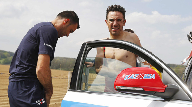 Joaquim ‘Purito’ Rodríguez no pudo terminar la Amstel Gold Race, prueba en la que era uno de los grandes favoritos, a causa de una caída en el kilómetro 90, saldada con un fuerte golpe en el pecho.