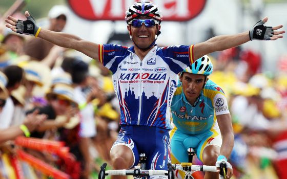 A tres kilómetros de metra, Purito, que debutaba en el Tour, tras no haber sido nunca antes de la partida, vio que el terreno era adecuado a sus cualidades, ésas que le hacen incomparable a la hora de mantener un esfuerzo en las pendientes más exigentes y explosivas. Nadie pudo superarle. Solo Alberto Contador, que entendió que el movimiento de Purito le podía beneficiar en su pelea por la general, se selló a la rueda del catalán y, ambos, en perfecta concordia, fueron haciendo camino juntos.