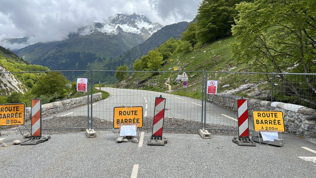 La Marcha cicloturista internacional Quebrantahuesos 2023 sigue en el aire y dependiendo de las autoridades y medios logísticos franceses. Y es que a miércoles 24 de mayo de 2023 la vertiente gala del Portalet -Pourtalet en su idioma- sigue cerrada a poco más de tres semanas del masivo y popular evento con sede en la localidad oscense de Sabiñánigo. Así lo ha acreditado in situ este medio con las dos vallas de cierre del puerto y el vídeo y las fotografías exclusivas de la zona afectada por dos desprendimientos en el entorno de la penúltima y última visera de la ascensión, aproximadamente a 6 kilómetros de la cima.
