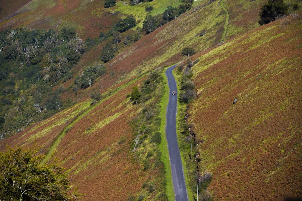 En carretera es una de las zonas que más juego da todos los Pirineos con un listado casi inacabable. Subidas con una personalidad muy marcada, en la que su encrucijada de carreteras diseña un mapa de puertos inigualable. Carreteras estrechas y sumamente tranquilas sin apenas tráfico, elevados porcentajes, pero siempre edulcorados por un entorno espectacular digno de la parada, el reposo y el relax de la paz acústica. Oxígeno gourmet para los procedentes de los grandes núcleos urbanos.