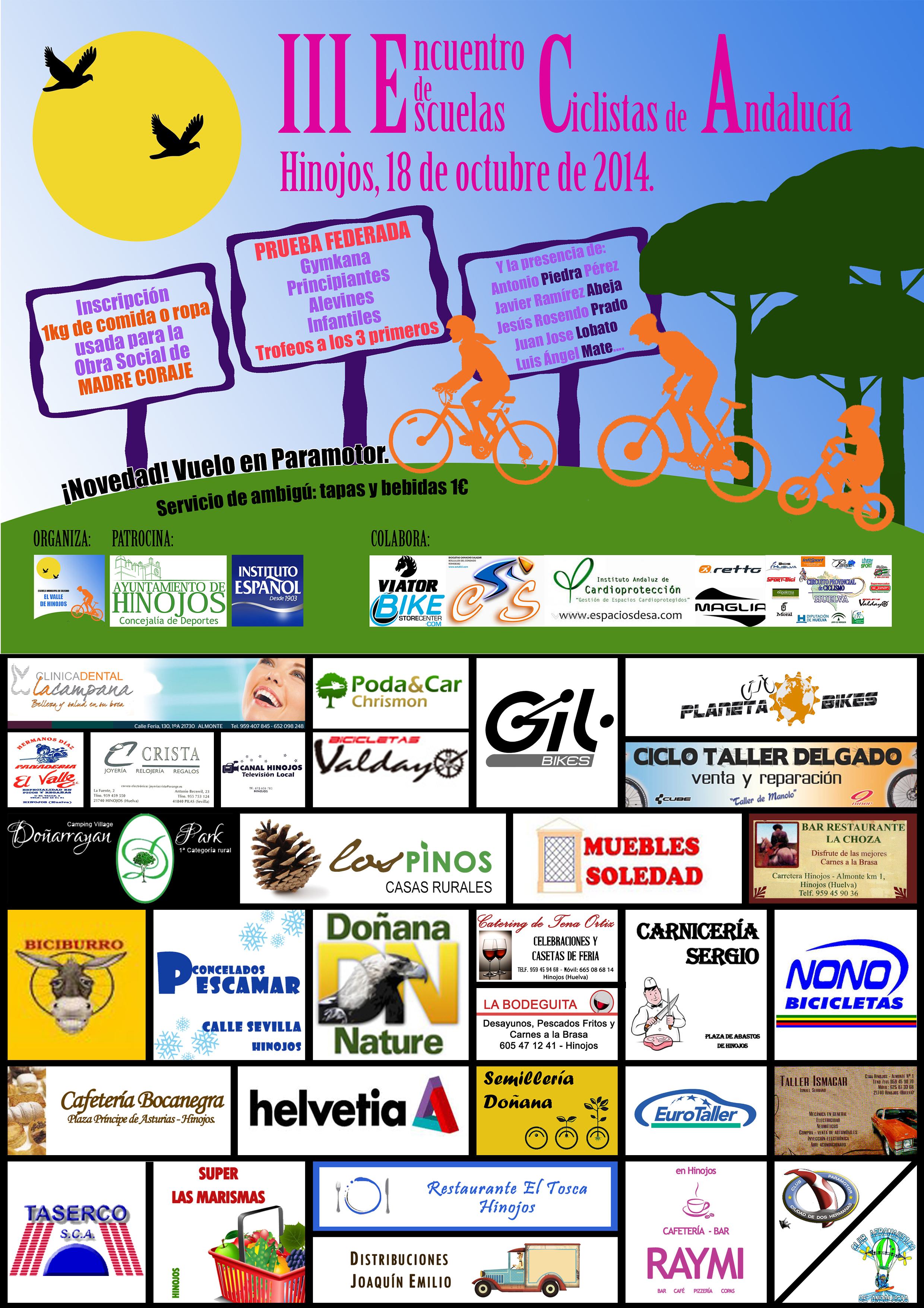 El CC El Valle de Hinojos prepara para este sábado día 18 la tercera edición del Encuentro de Escuelas Ciclistas. Se trata de una cita dirigida a todos aquellos ciclistas de categoría de escuelas (principiante, alevín e infantil) con el objetivo de pasar un día en familia y fomentar el uso de la bicicleta entre los más pequeños.