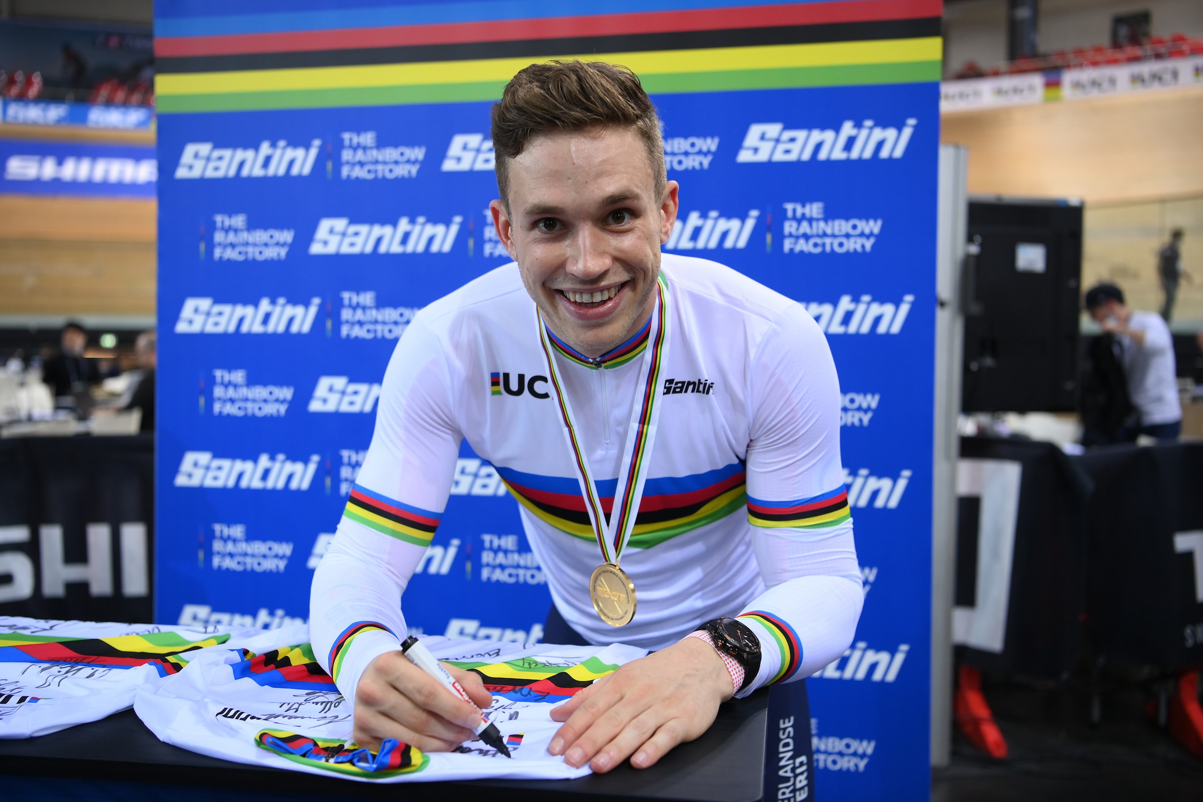 Con la victoria hoy en la prueba de velocidad, Harrie Lavreysen ha establecido un nuevo récord de medallas de oro en un Campeonato del Mundo, con 16. Ganando el miércoles la velocidad por equipos empataba la marca de 14 títulos del francés Arnaud Tournant, para mejorarla al día siguiente con su primer título en el kilómetro y rematar su serie hoy, aunque no lograba ese objetivo casi imposible de conseguir medalla -y a ser posible de oro- en las cuatro pruebas que afrontó, al quedarse fuera de la final de keirin.