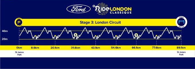 La 9ª edición de la RideLondon (2.WWT) se disputará entre el 26 y el 28 de mayo, con un recorrido de tres etapas, aspecto que estrenó el año pasado, tras haber sido previamente una clásica de un día. La primera jornada, entre Saffron Walden y Colchester, se prevé que se resuelva al sprint. La segunda con salida y llegada en Maldon incluye un bucle final con tres ascensos a Little Baddow, lo que podría seleccionar el grupo. La carrera terminará en Londres, con un circuito urbano que ofrecerá una nueva oportunidad a las velocistas.